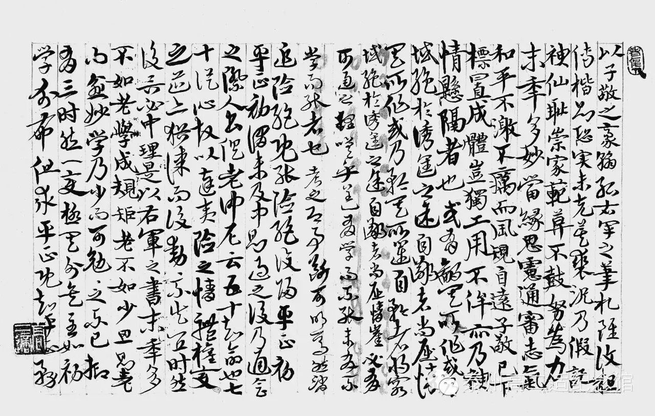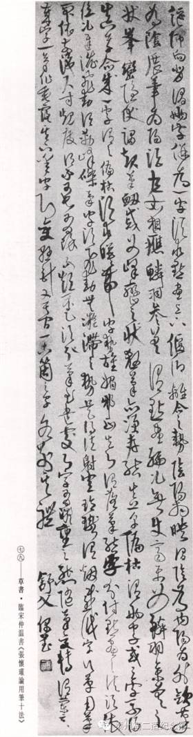 章草盖中绝于晚唐,千年来稍振其馀绪者,元初惟赵子昂,明初则宋仲温。然子昂诸体微伤软美,仲温短矱钟王,达以劲气,龙跳虎卧,仿佛遇之,可谓复古而能变,豪杰之士也。