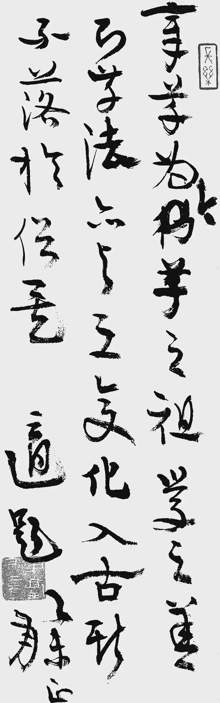 正是基于这种独立思考和敢超前贤的勇气,高二适找到了摆脱宋克阴影的切入点:如果说以章解王,融合章、今,其实就是他研究宋克的阶段,那么,他年逾花甲力创“狂草新体”便是他奋力超越宋克的阶段,是他勇攀“羲之之后一人而已”之高峰的新起点。