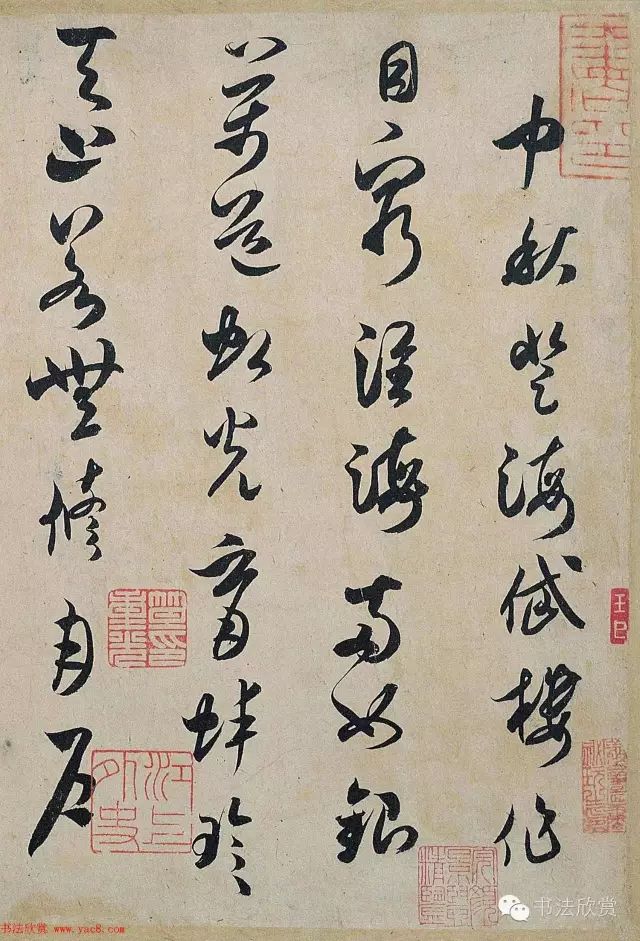该书法作品是沈周满怀激情,以七言律诗的形式,兴致勃勃地抒发其与浦汝正等友人中秋赏月时的复杂心情。