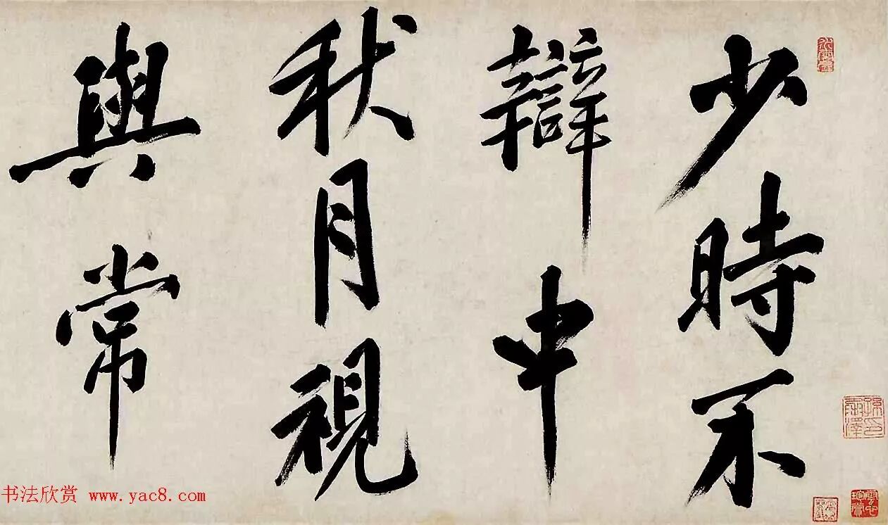 释文:中秋登海岱楼作。目穷淮海两如银。万道虹光育蚌珍。天上若无修月户。桂枝撑损向西轮。三四次写,间有一两字好目穷淮海两如银。万道虹光育蚌珍。天上若无修月户。桂枝撑损向东轮。信书亦一难事。