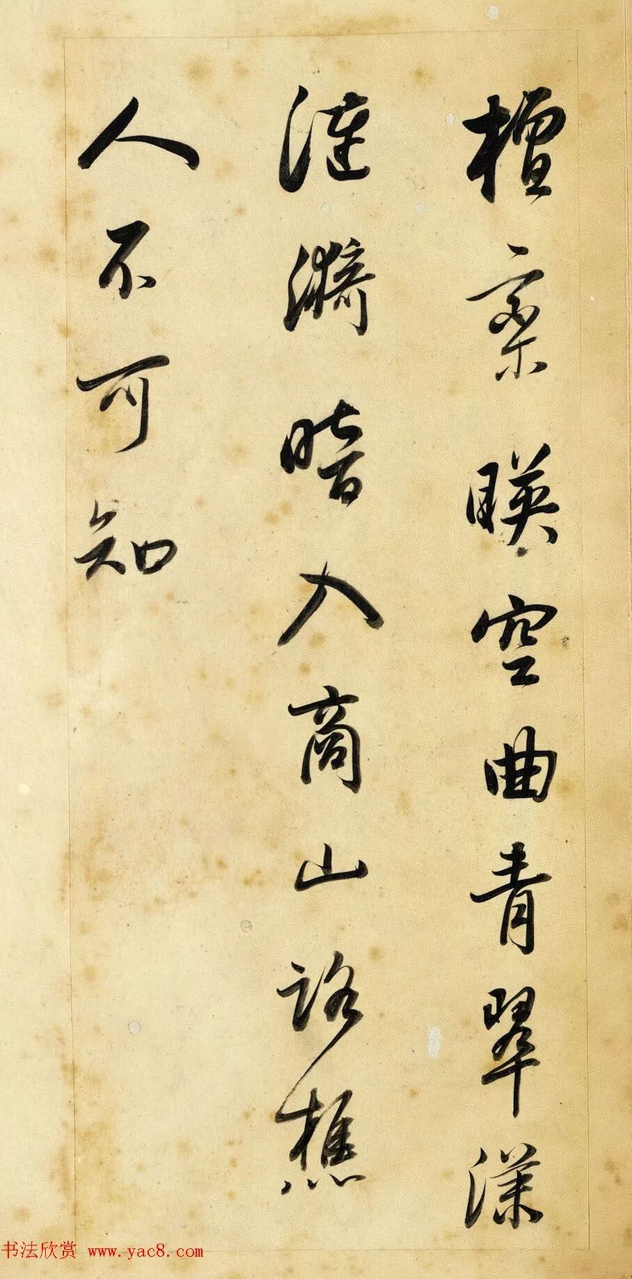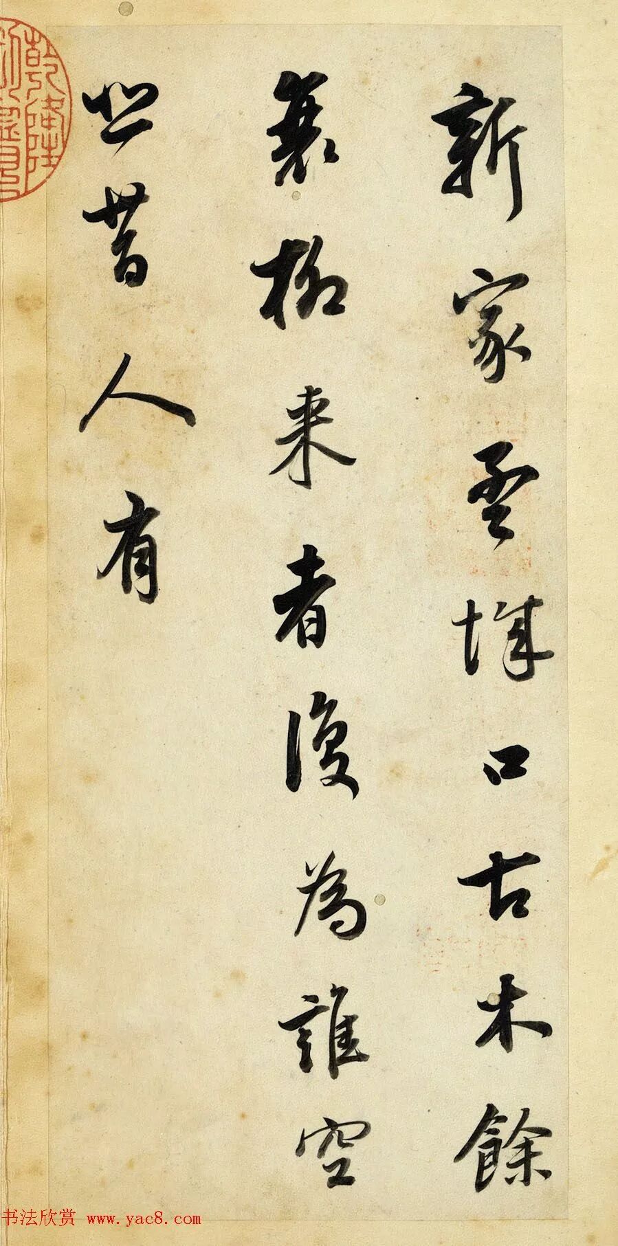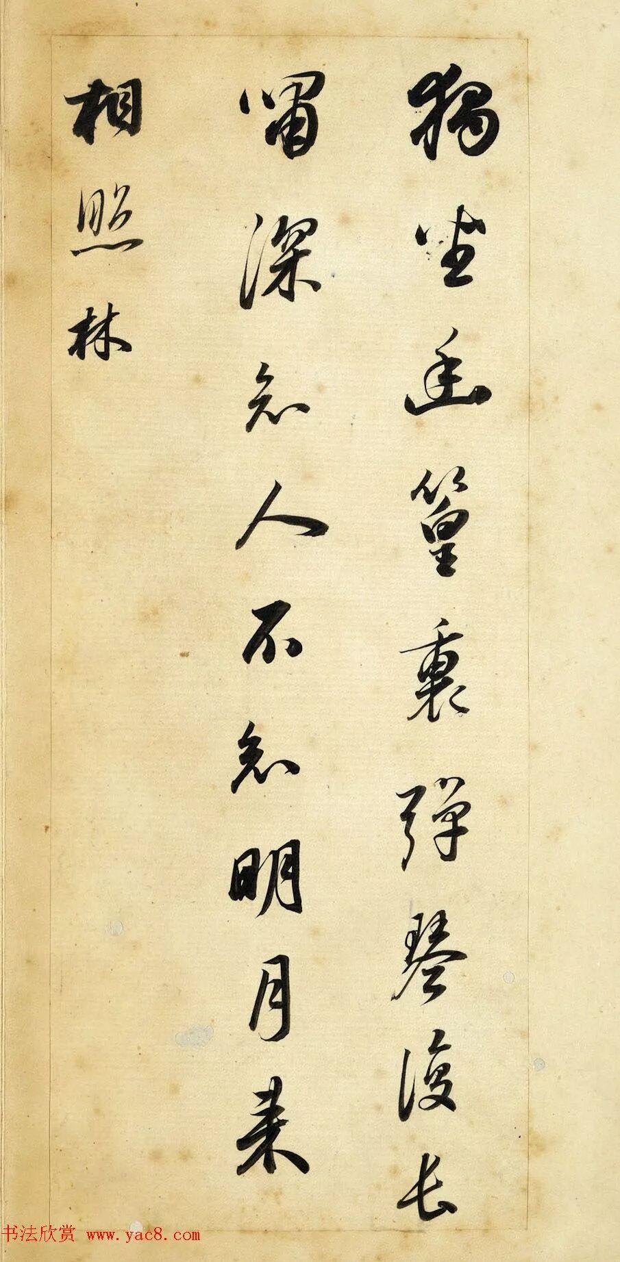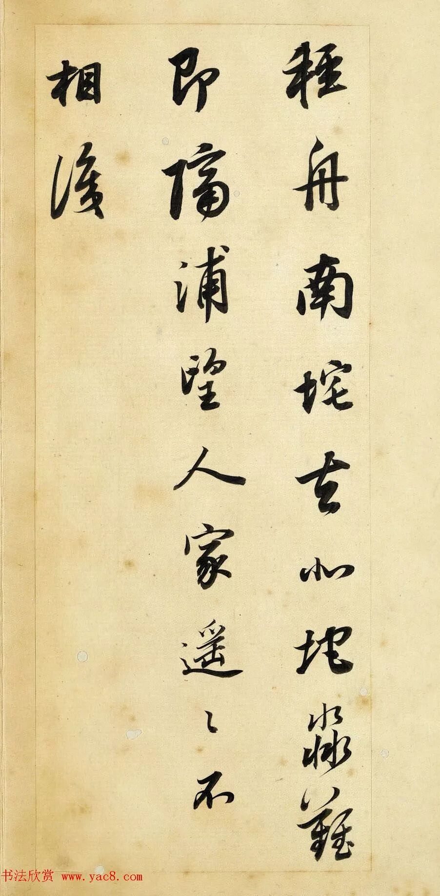 此冊用筆含蓄而凝斂,線條圓厚潤澤,卻又不失清勁與力度,豐富多變的墨色,反映出運筆的動作與書寫節奏,稍微敧側的結字,讓作品顯得更加生動活潑。