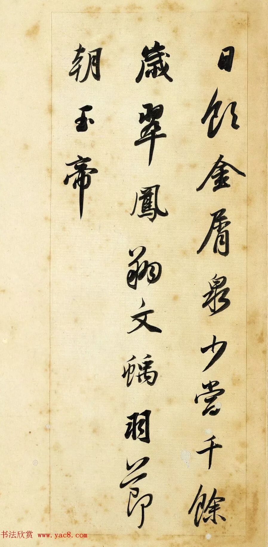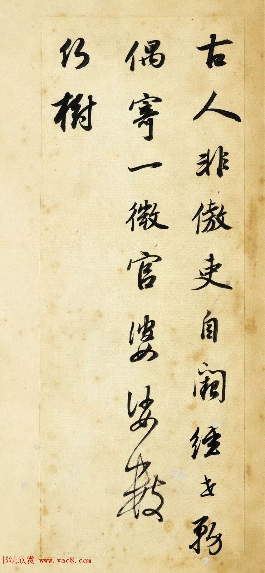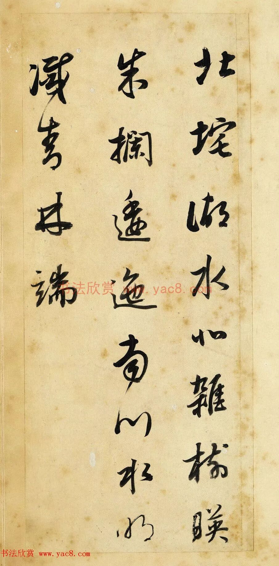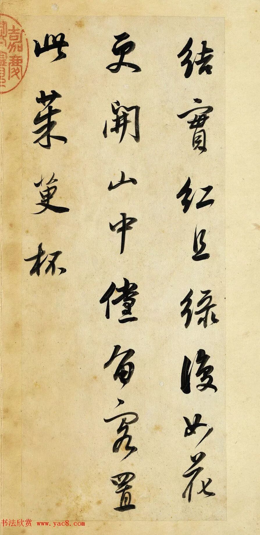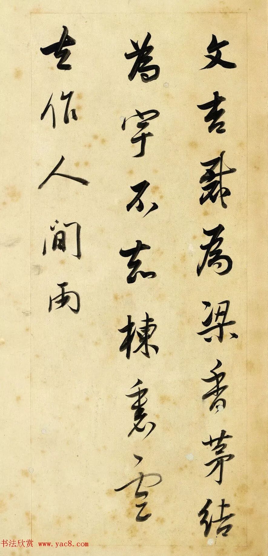 此冊用筆含蓄而凝斂,線條圓厚潤澤,卻又不失清勁與力度,豐富多變的墨色,反映出運筆的動作與書寫節奏,稍微敧側的結字,讓作品顯得更加生動活潑。