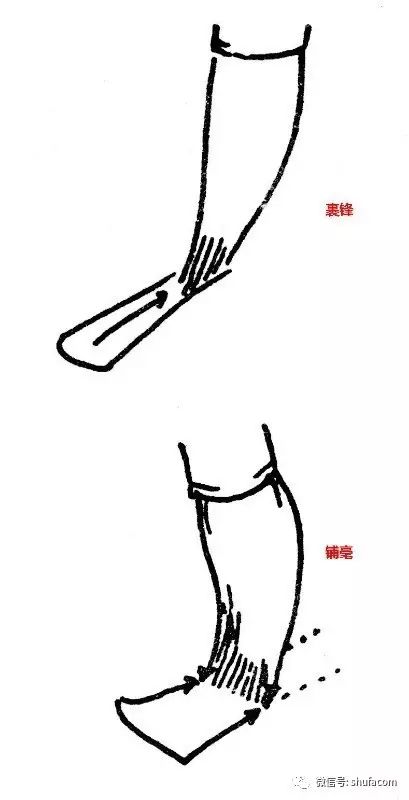 由于运笔顺逆用劲的不同,中锋有裹锋、铺毫的细微区别: