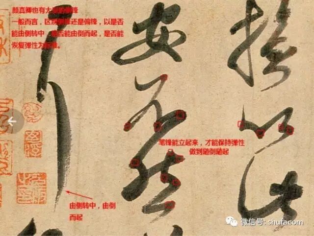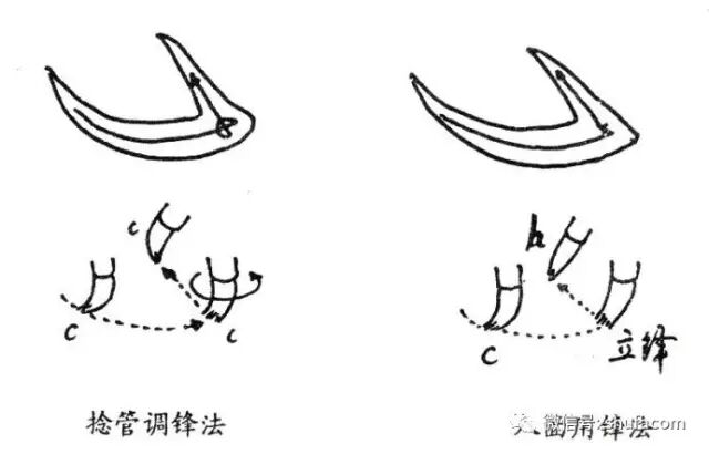 当然,中锋是相对的,锋不时有偏侧倒下的情况,但仍然是充满弹力,能一倒即起,由偏转正,势险而力劲,这叫侧锋。