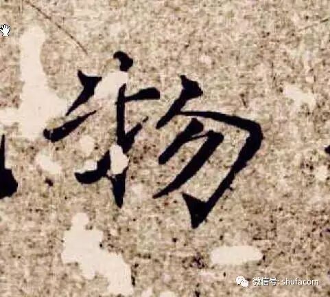 运笔时管是稍后倾的,笔毫被推着前进,因而被整齐地打开,呈万毫齐力状态行进,线条两边轮廓线特别有坚实感。魏碑方笔多为这运笔。