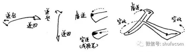 起笔时笔锋的方向正好和笔画行笔的方向相逆,所谓“欲右先左,欲下先下”的落笔方法。回锋收笔,是在收笔处反方向带回笔锋。
