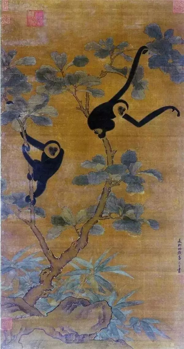 写榴树一枝,繁花盛开,一时黄鹂栖于枝杆,鸣啼不己。神态活泼,双钩作线条,工笔重彩描绘,为明代中期院体画的典型风格。画幅左侧中部有墨书“吕纪”款。