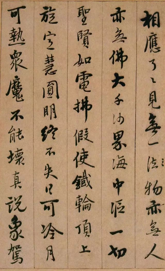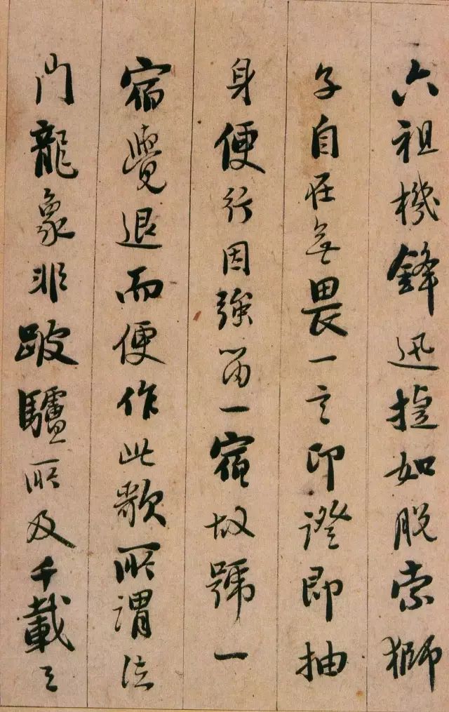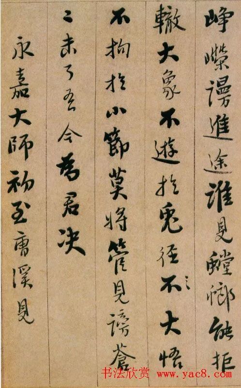 憨山《永嘉真觉大师证道歌》 ,此本内容为性理修养之说,涉佛教。写法上本于王字,不少字的结字与《圣教》相类。然取势用 笔颇有自己特色,与明末书家喜一笔顺势带下,连绵不断的行草写法迥然有别。