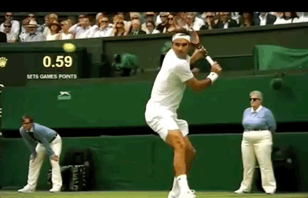 下面以费德勒接发球为例,一起追忆和欣赏那些“违反规则”技艺的魔术之美:
