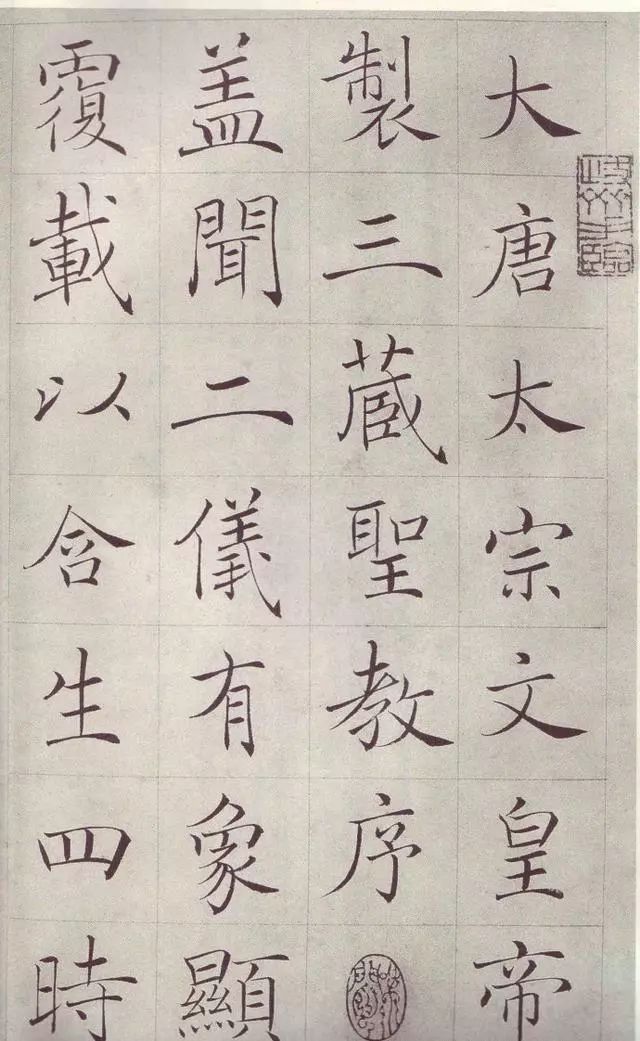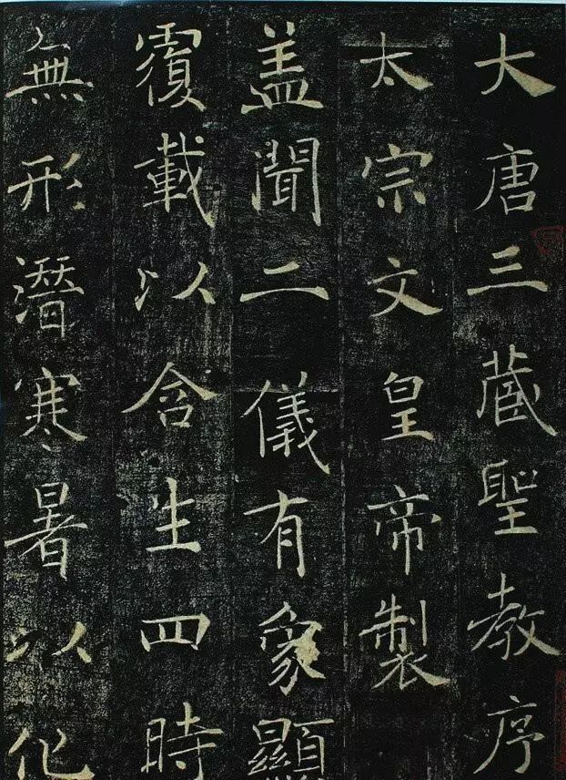 《圣教序》,唐太宗撰文,弘福寺僧人怀仁集王羲之字刻碑,也称《大唐三藏圣教序》或《唐集右军圣教序并记》《怀仁集王羲之书圣教序》,完美再现了王羲之书法“端庄杂流丽,刚健含婀娜”的艺术特征,被书法界奉为圭臬。