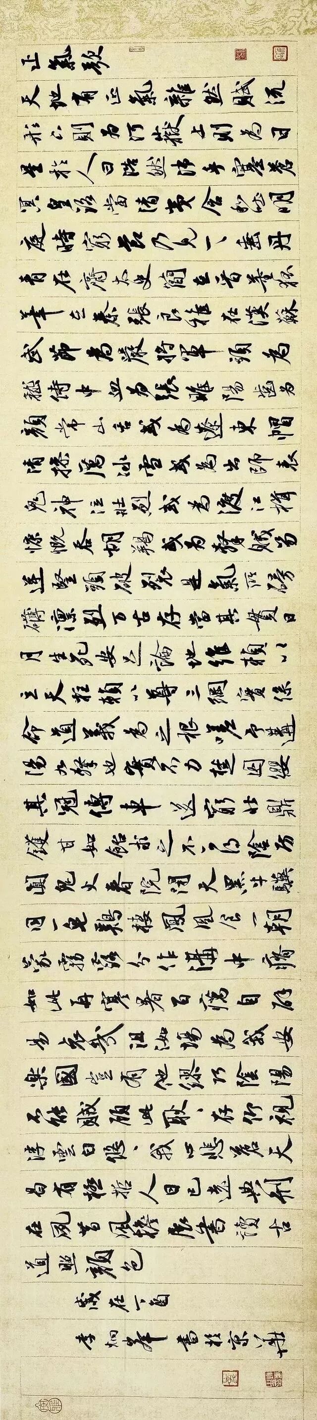再则,正书的结字一般来说较为匀称,《书谱》有一句话时常被我们所引用:“初学分布,但求平正;既知平正,务追险绝……”我们在追求行草书结字奇诡多变之前,应当先具备将线条匀称、规律性分布的能力,能正则自然后能破正,而写好正书也可以使我们具备这种能力。