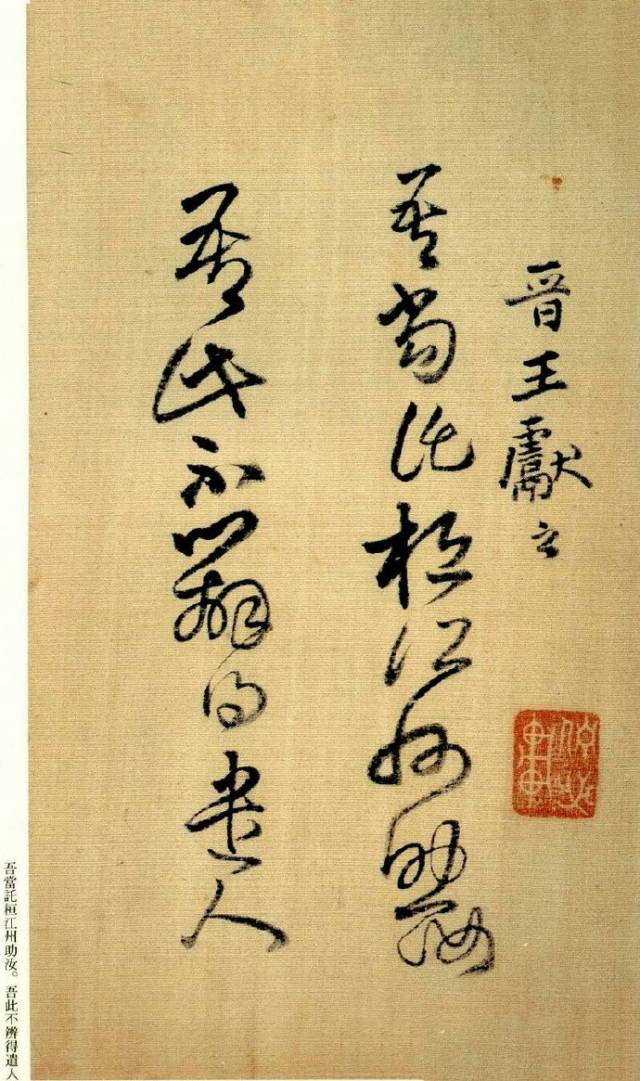 ? 丙戍三月初五,夜二更,带酒,微醺不能醉,书于北都琅华馆。用张芝、柳、虞草法,拓而为大,非怀素恶札一路。观者谛辨之,忽忘。