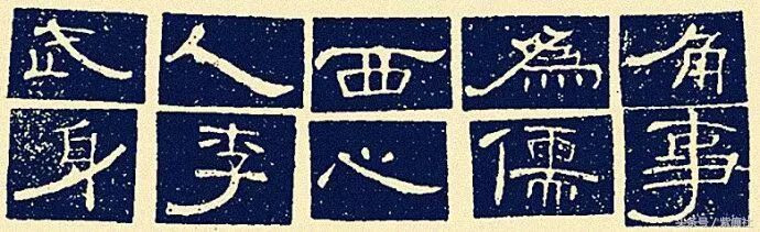 汉字经过隶变,每个字本来都有了新的写法,与篆书的面目不一样了卜但是在一些隶书家的笔下,故意让少数字或部分、或整个儿地保留着篆书的写法。推寻这些书家的用意,大概是想赋予隶书一点古色古香的味道吧。形体不固定的另一种情况是,有的书家有意减少一些字的点画。