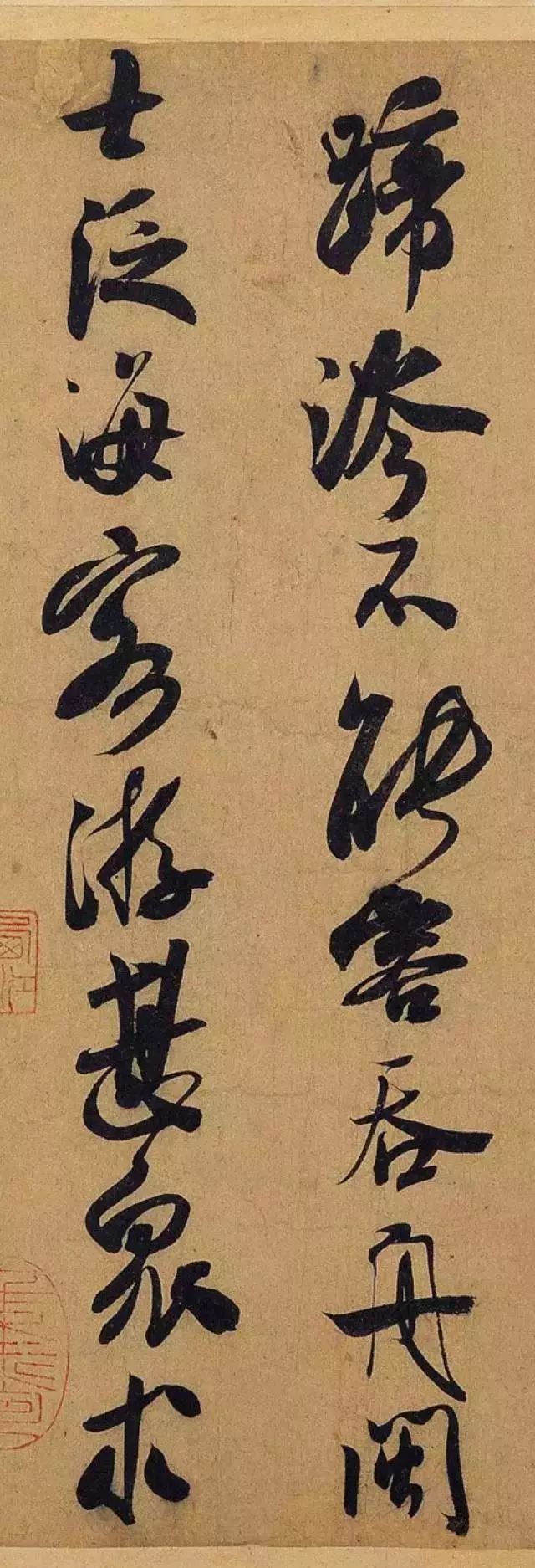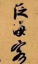 第三个“海”字稍小,笔画粗而提按不明显,呈现一个圆圆的体态,水字边和“每”的下半部有些模糊,字的墨韵极佳;