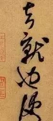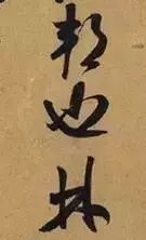 这两字截然不同的写法,前者细挺的线条,加上竖钩时狠狠往上锐利一钩,横画也以粗笔带过,成为字的重心所在;