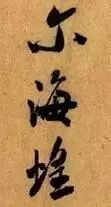 第四个“海”字,略带正方形,此字有一个特点,即“海”中间的横画粗旷的向右带开,这样的力道用在小行草上是罕见的。