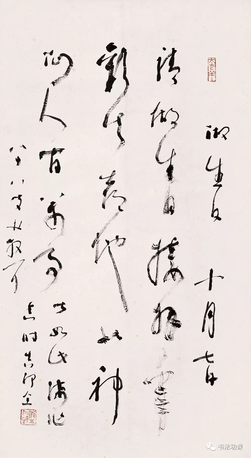 那些把中国书法简单化公式化的观念,那些把书法仅仅理解为结构加笔法的观念实在是幼稚可笑的。殊不知,精神性的特点才是一切优秀书法作品的主要特征。书法中的技巧是有形的,可以观,可以摹。而书法中的精神性则无迹可循。他是由人的品格、境界所决定。如果说一个人的品格的提升和精神的升华必须要有一种超越功利,维护心灵的自由和人格的独立做保证的话,那么,自甘清贫,自甘寂寞就是取得这种保证的必要代价。