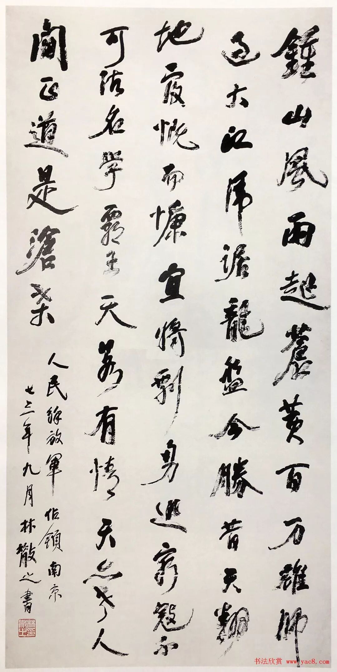 高二适草书毛泽东诗《人民解放军解放南京》,作于1973年十月。