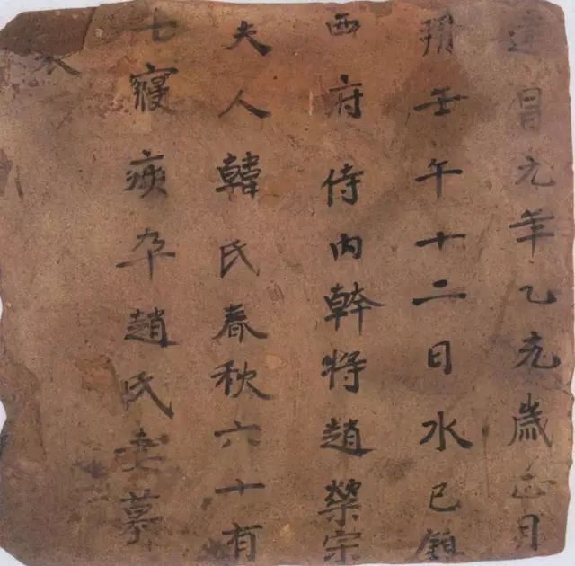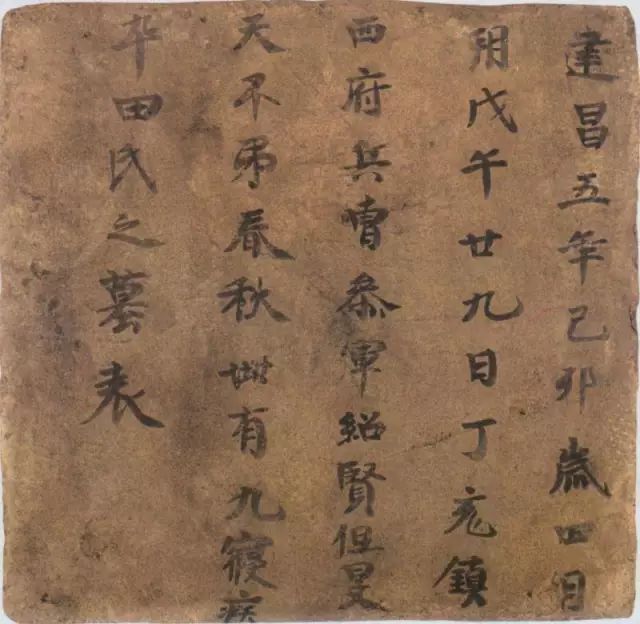 此墓表为砖质。高33CM,宽33.5CM。朱书,8行63字。1930年新疆吐鲁番雅尔湖出土。北京故宫博物馆藏。