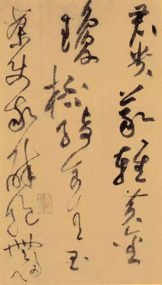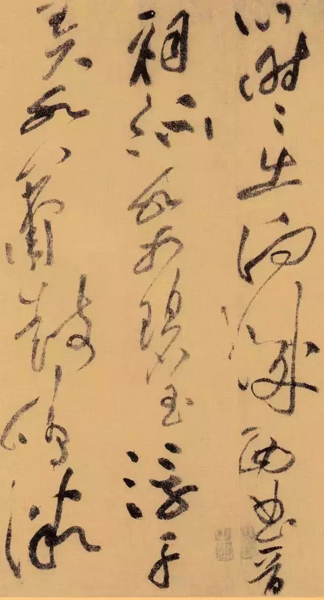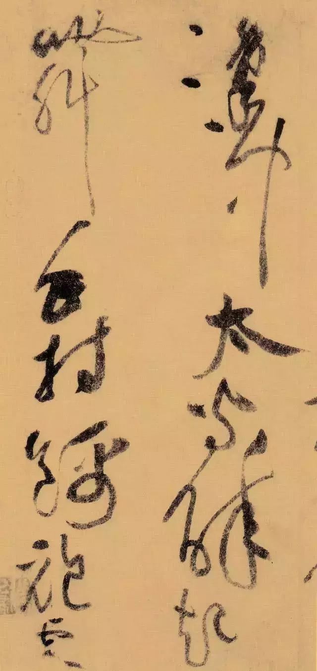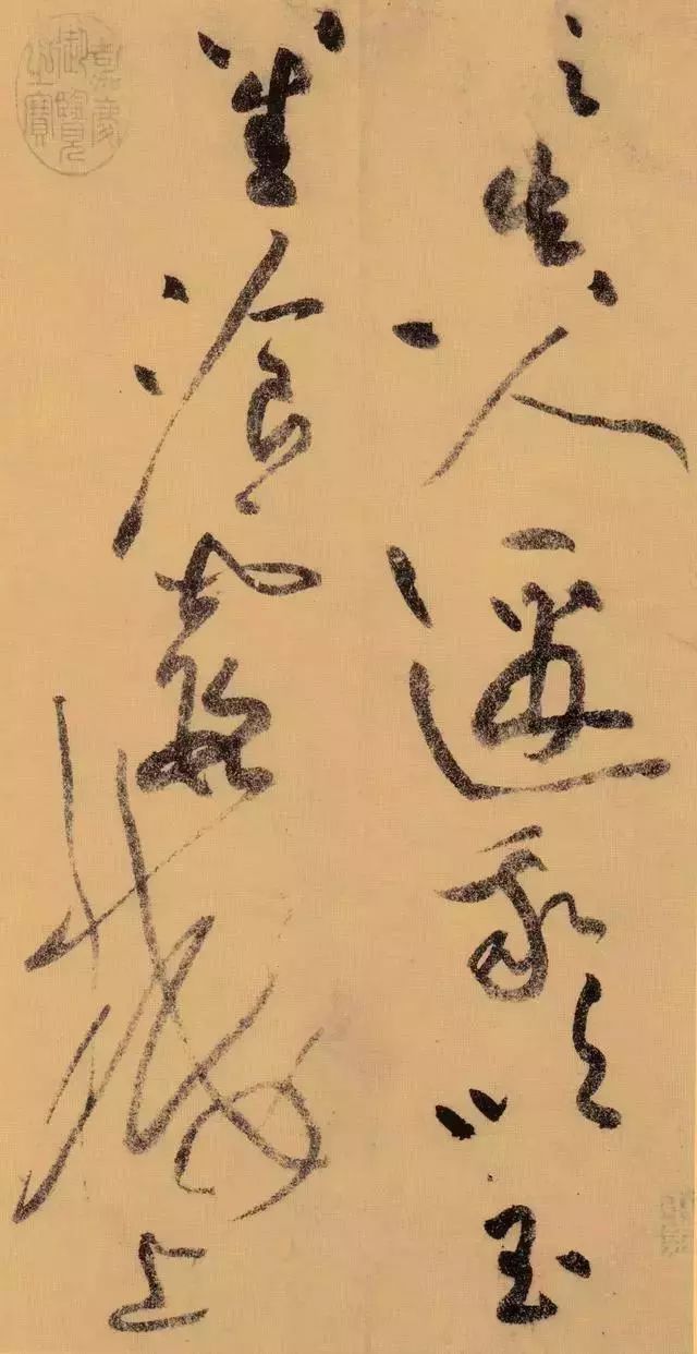 黄庭坚草书中有一种不易觉察的宽博。他常常压缩字结构的某一部分而使另一些空间显得特别开阔,同时也就造成了疏密节奏的频繁变化。这是他区别于唐人章法的又一特点。