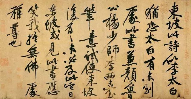 东坡此诗似李太白,犹恐太白有未到处。此书兼颜鲁公、杨少师、李西台笔意,试使东坡复为之,未必及此。它日东坡或见此书,应笑我于无佛处称尊也。