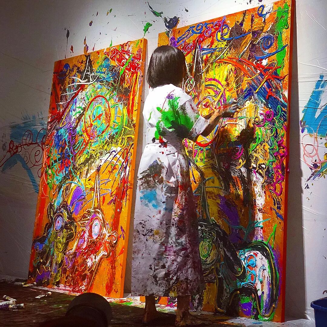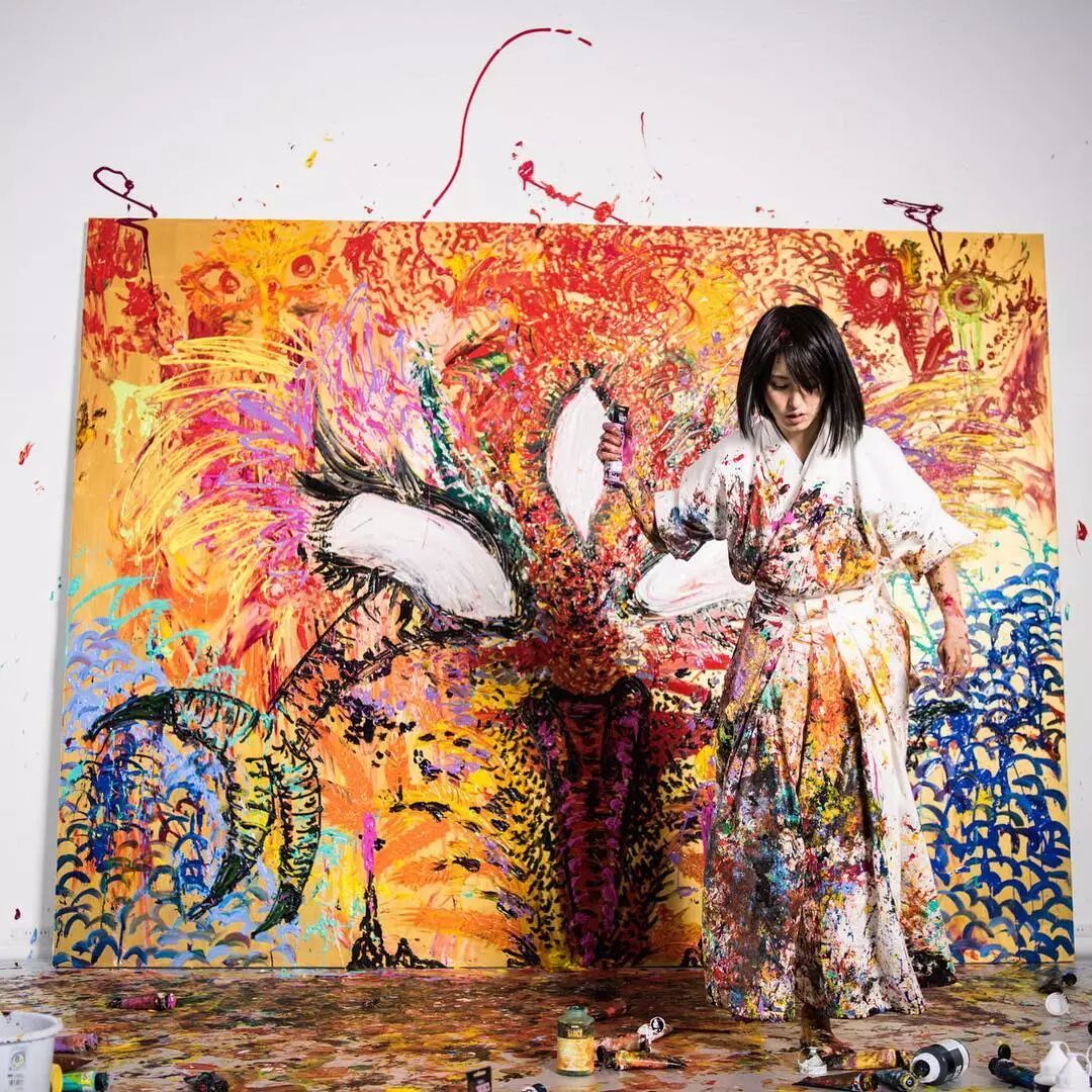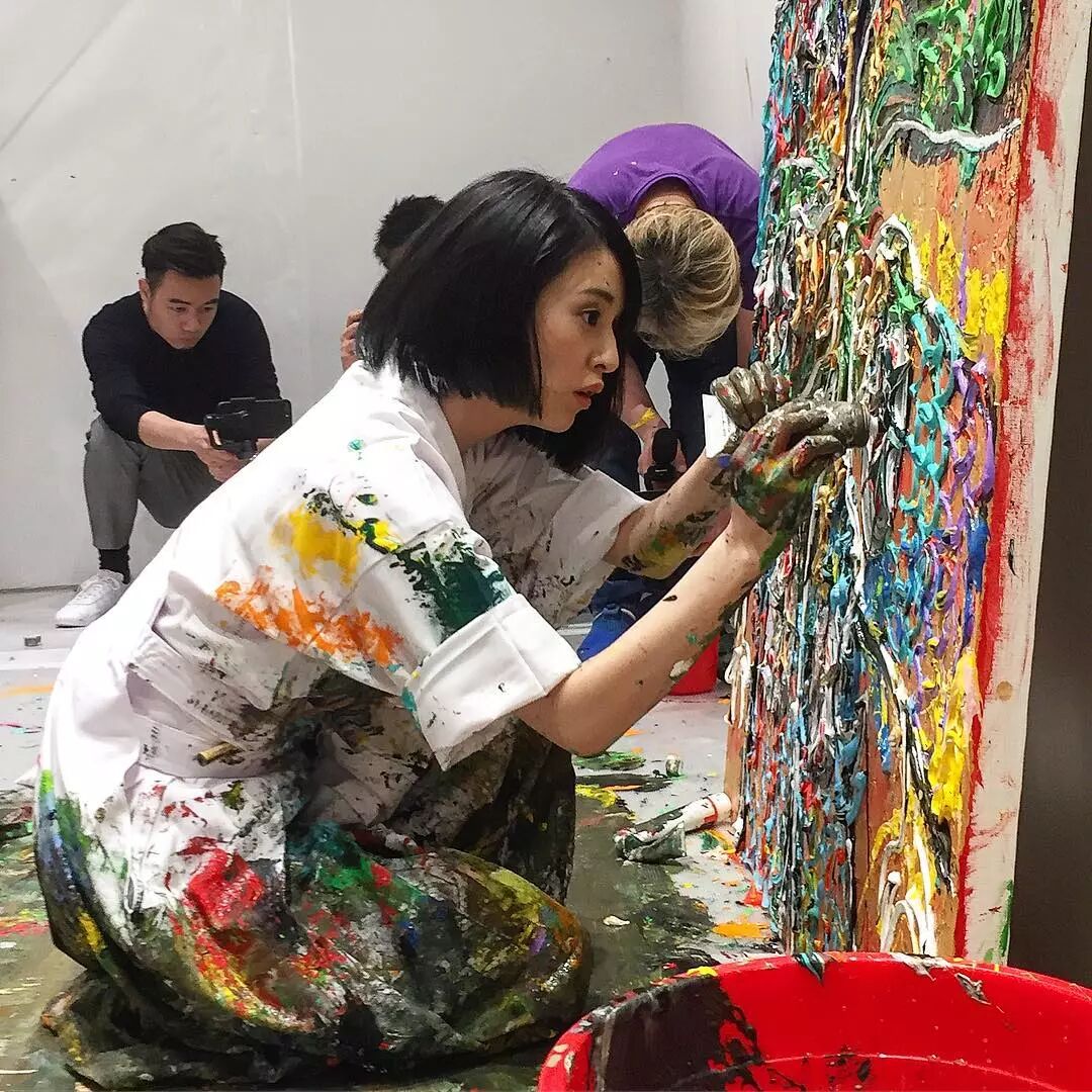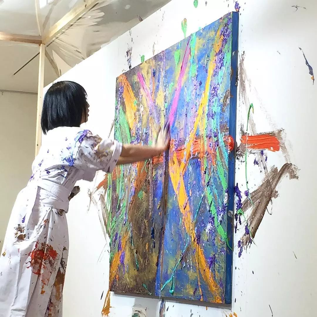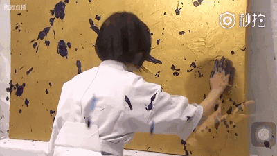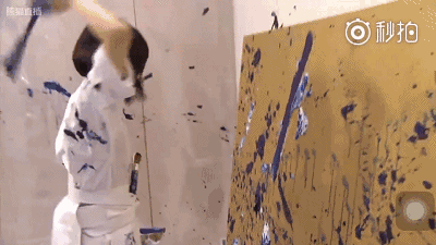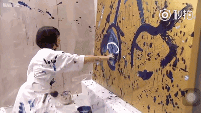 她就拿颜料瓶直接扔、甩、涂、抹、泼