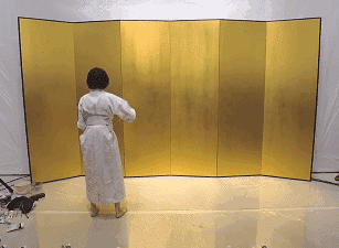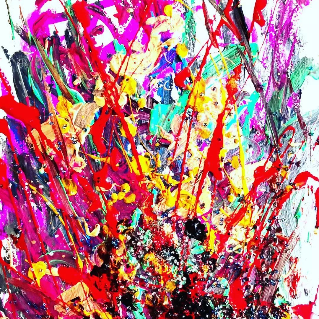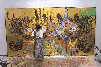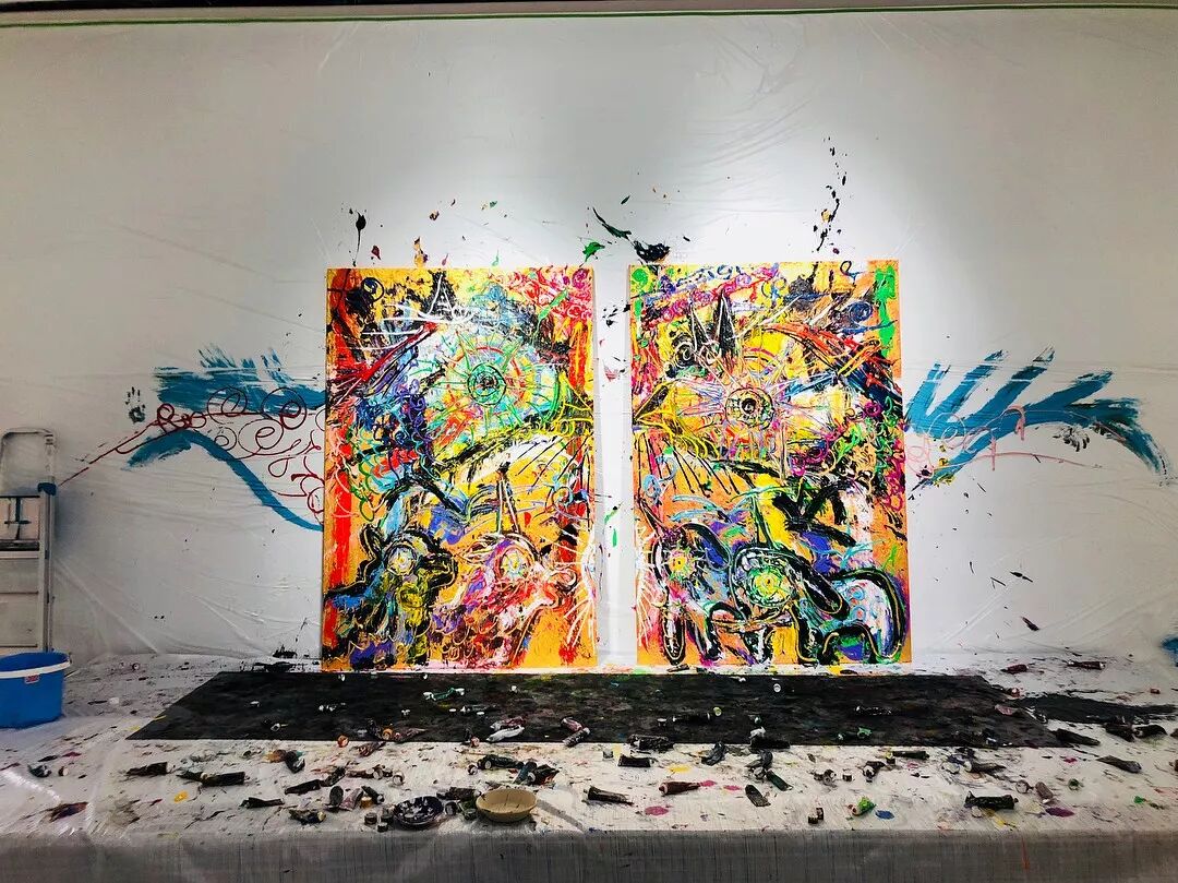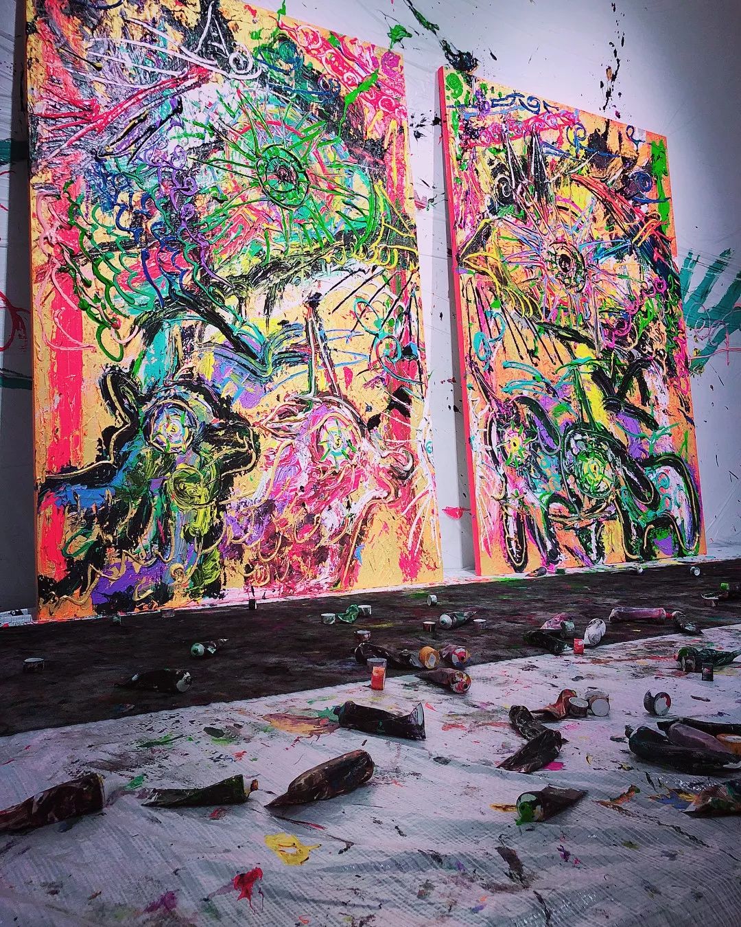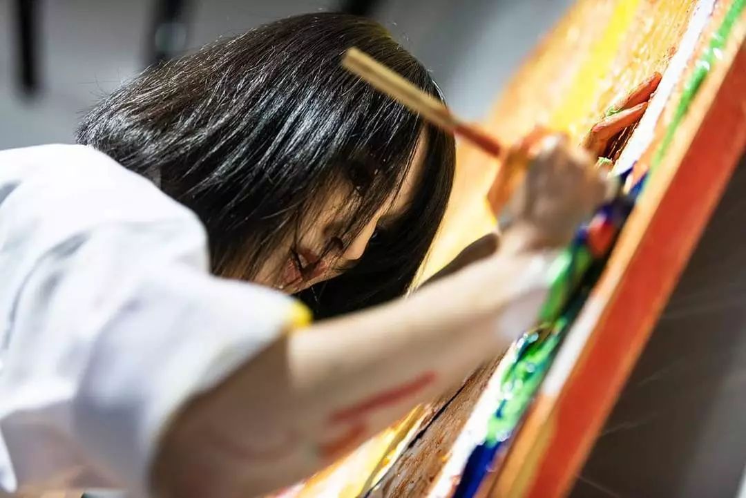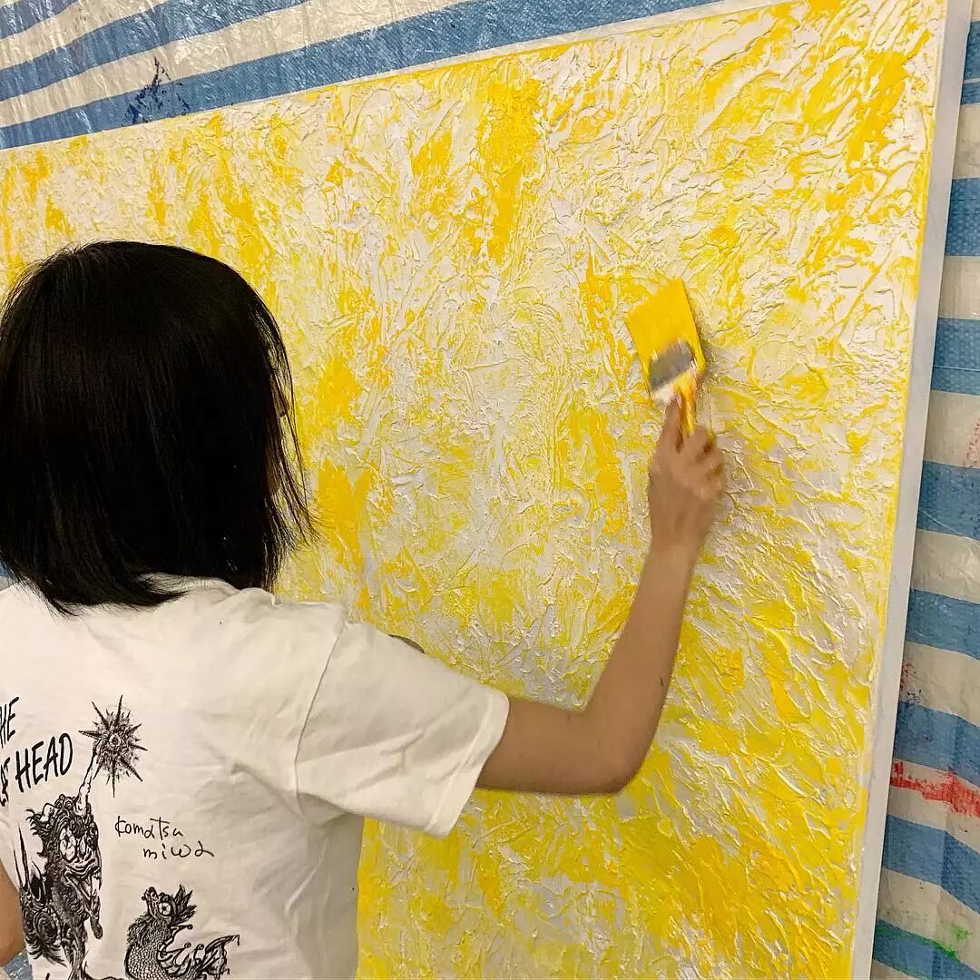 她就拿颜料瓶直接扔、甩、涂、抹、泼