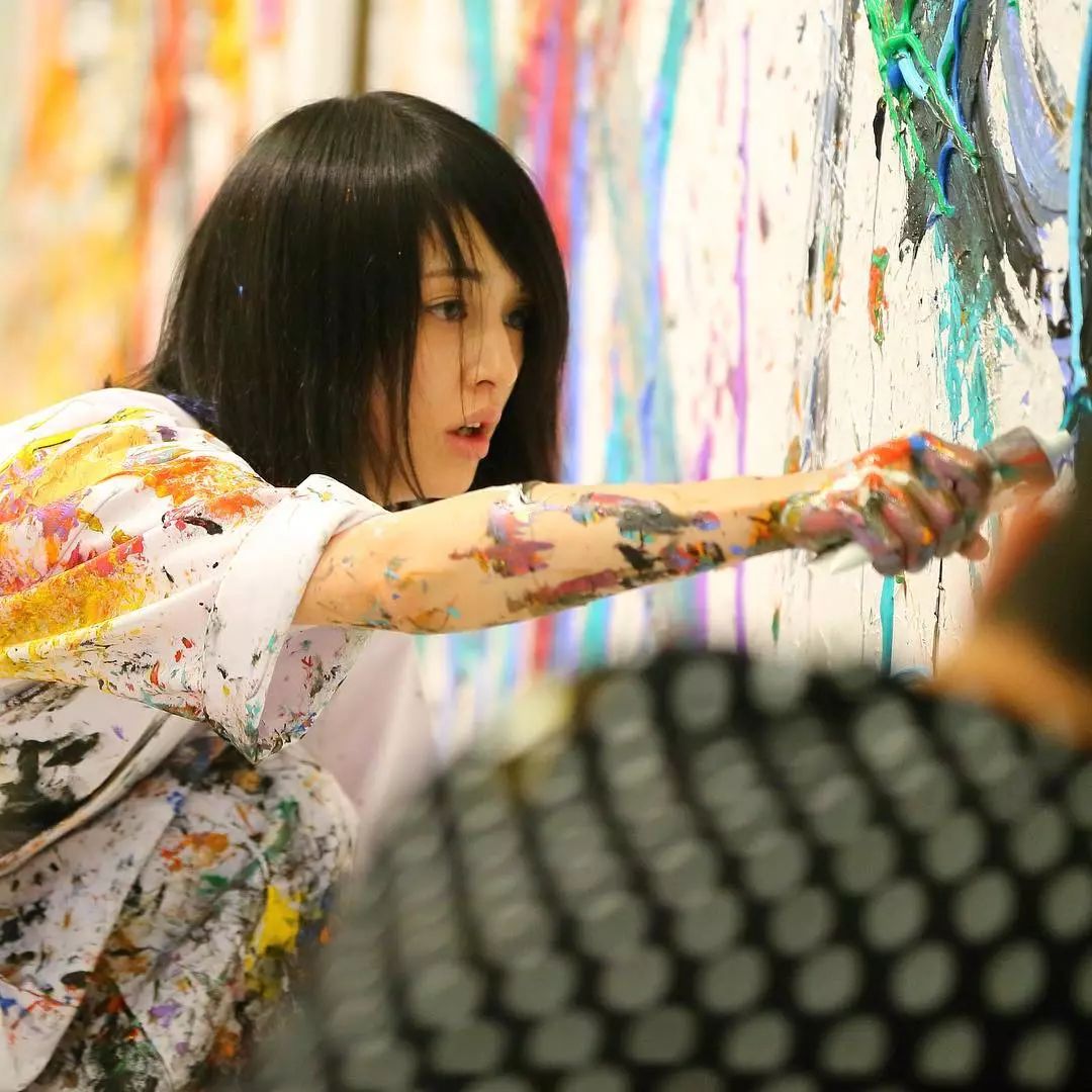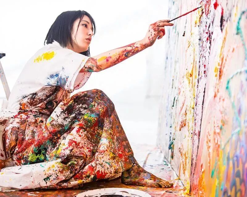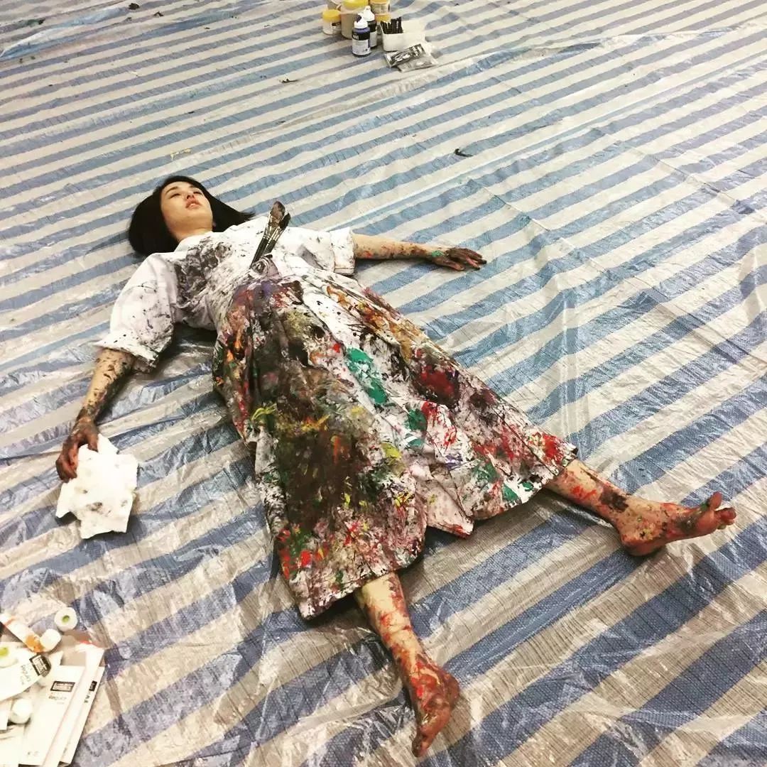 即便她浑身沾满颜料也让我们觉得很有魅力很干净很纯洁的大才女