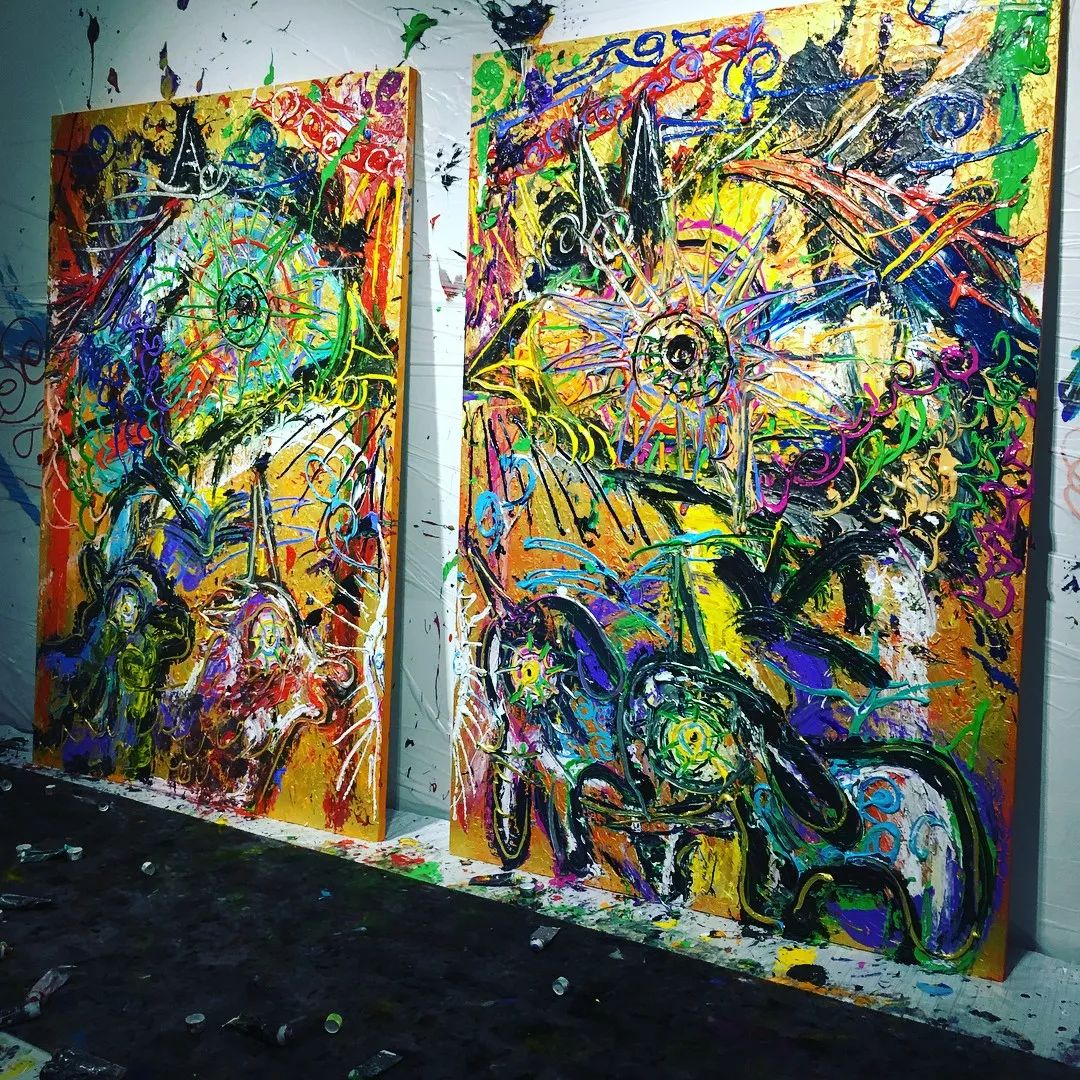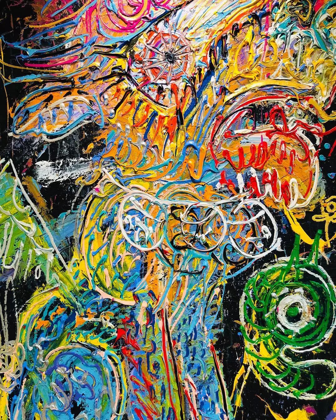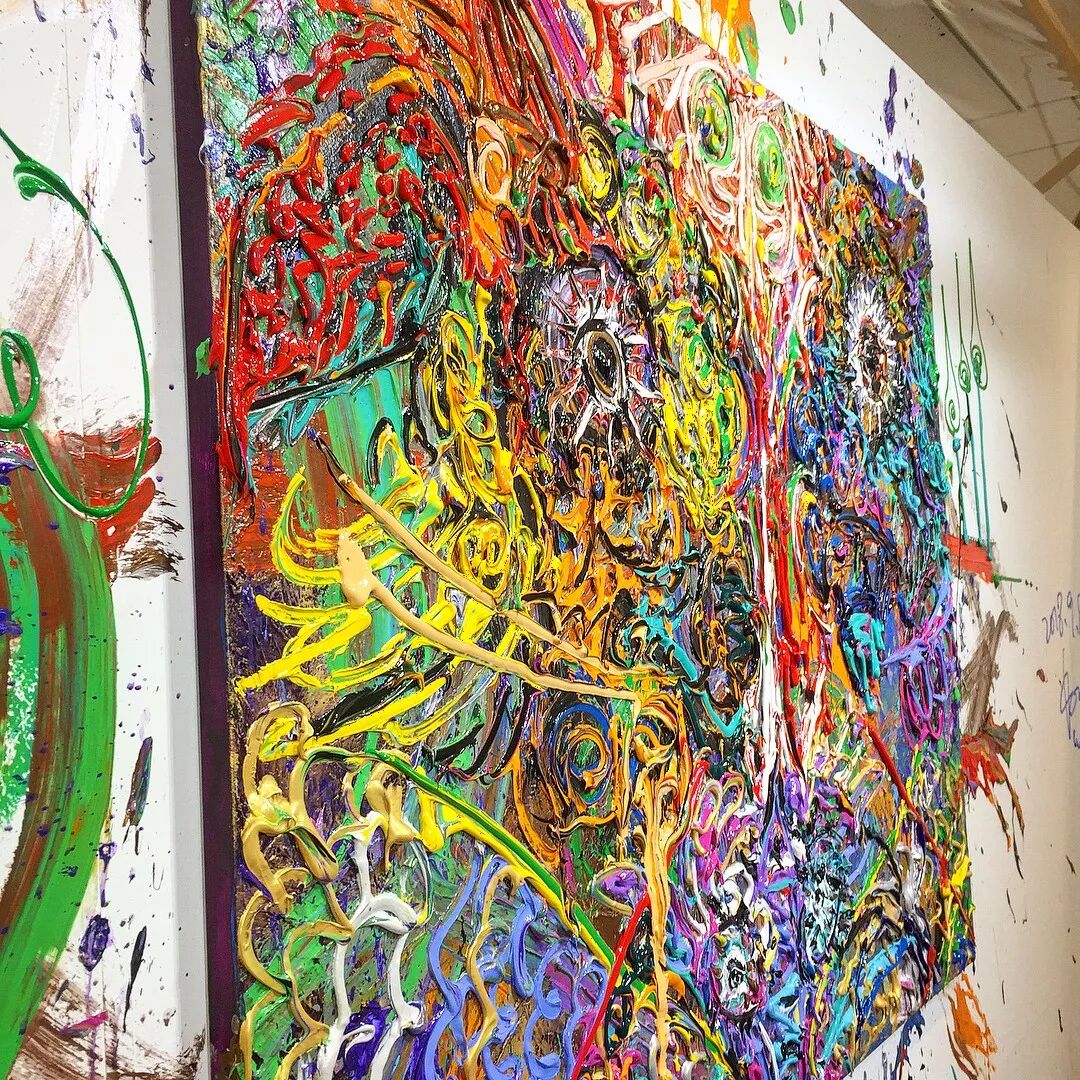 但每次画完后,厚厚的颜色往上涂,色彩丰富