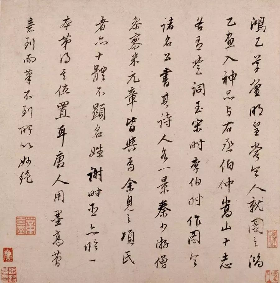 此种章法有行无列,但有意将行距拉大,通篇字距紧而行距松,营造了另一种疏朗和紧密强烈对比的形式,可以看成是对疏朗式章法的继承和创新。举例: