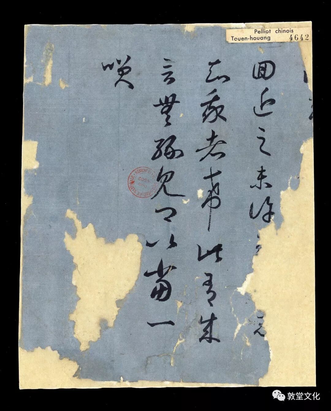 法国人伯希和在他之后,还弄走一件《旃罽胡桃》帖。今天我们要看的正是伯希和那件,现藏法国国家图书馆。(此处强调一点,查询资料时候,很多简介将此本列为大英图书馆藏,不知滥觞何处,但帖页右上方有明显的伯希和标记,是法国国家图书馆所藏,特此说明)