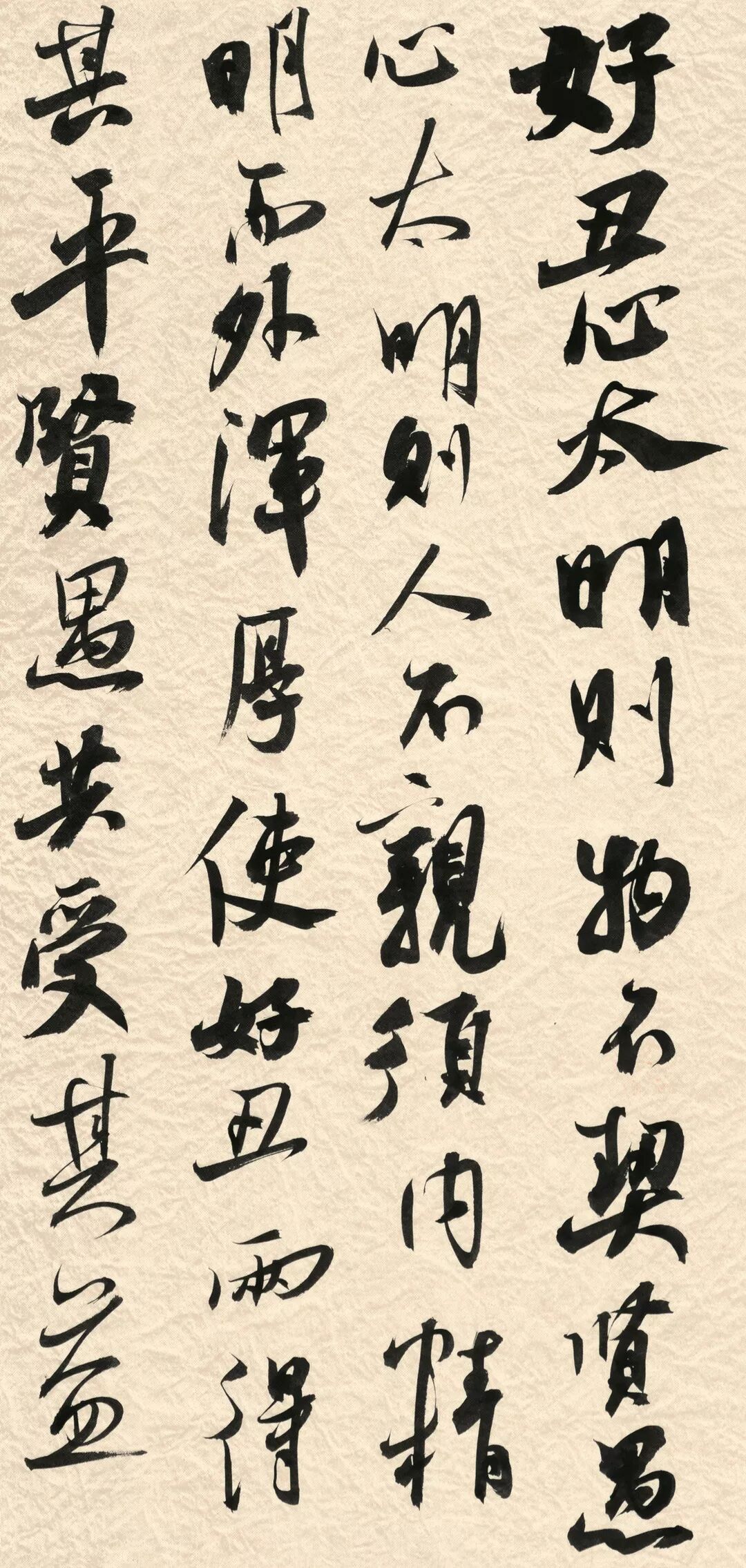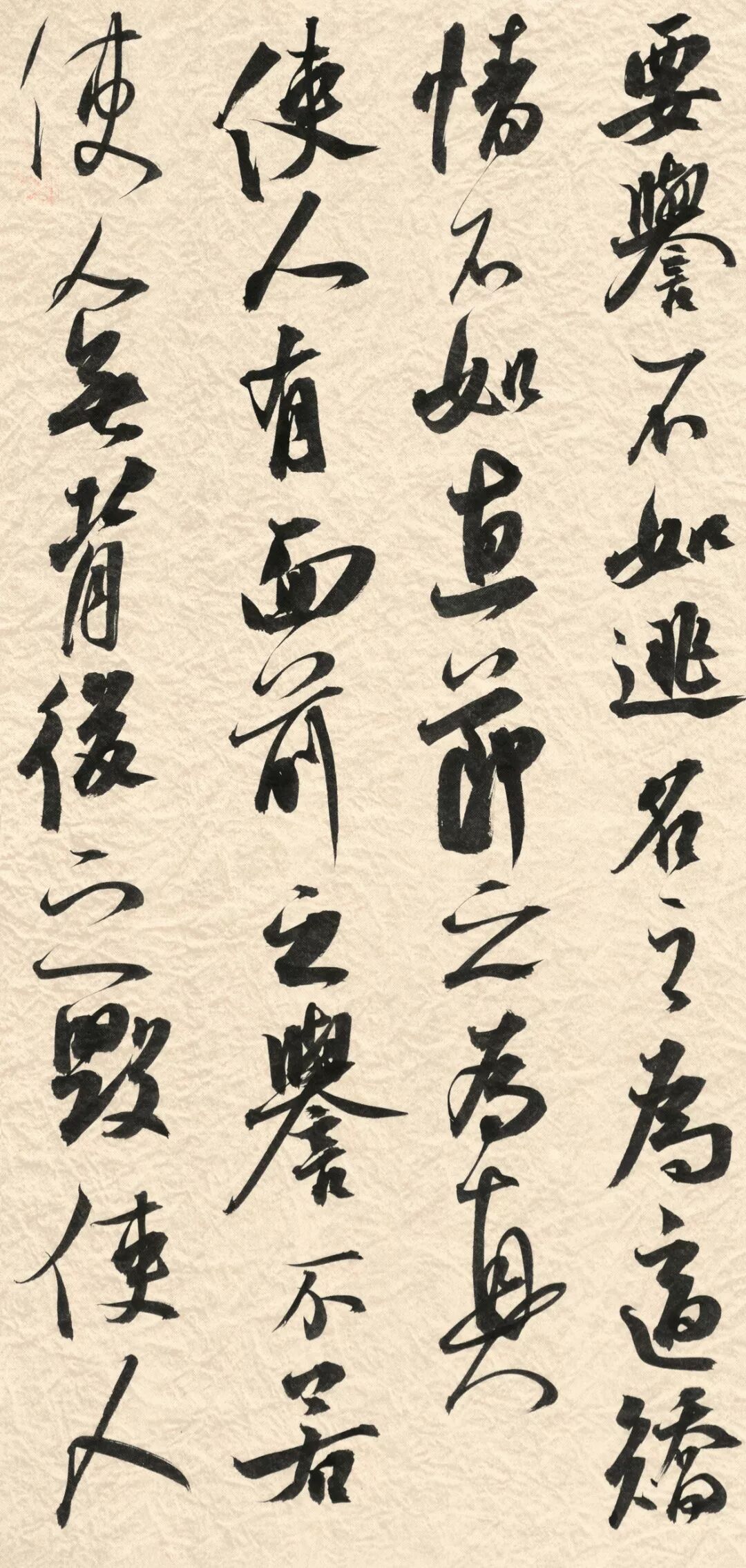 元稹云:“苏子卿、李少卿之徒,尤工为五言。虽句读文律各异,雅、郑之音亦杂,而辞意简远,指事言情,自非有为而为,则文不妄作。”作文需辞意简远,又要文不妄作,书法呢?当今有多少可以做到“书不妄作”?如今妄作之书多矣,何谈简远之气象。傅山“四宁四毋”有“宁丑毋媚、宁拙毋巧、宁支离毋轻滑、宁直率毋安排”,此即追求简远之境,虽“以丑为美”,但是傅山追求“丑”何尝不是因为当时的“美”太过媚俗?