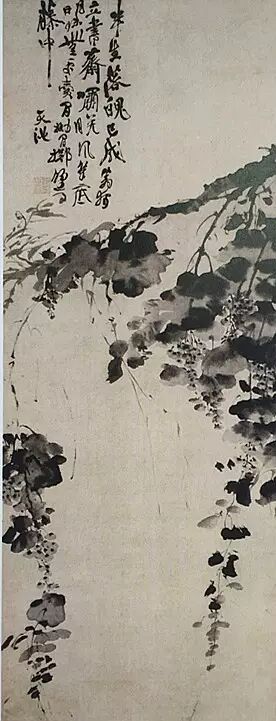 水墨大家徐渭徐文长亦喜酒,他把草书宕荡奇肆的线条和淋漓酣畅的水墨融为一体,画面富于音乐美感的视觉形象。如《墨葡萄图》的笔斜风雨,藤蔓飞扬,浓淡相间的叶片,珠圆玉润的果实,无不统一于如痴如醉的情感旋律中。
