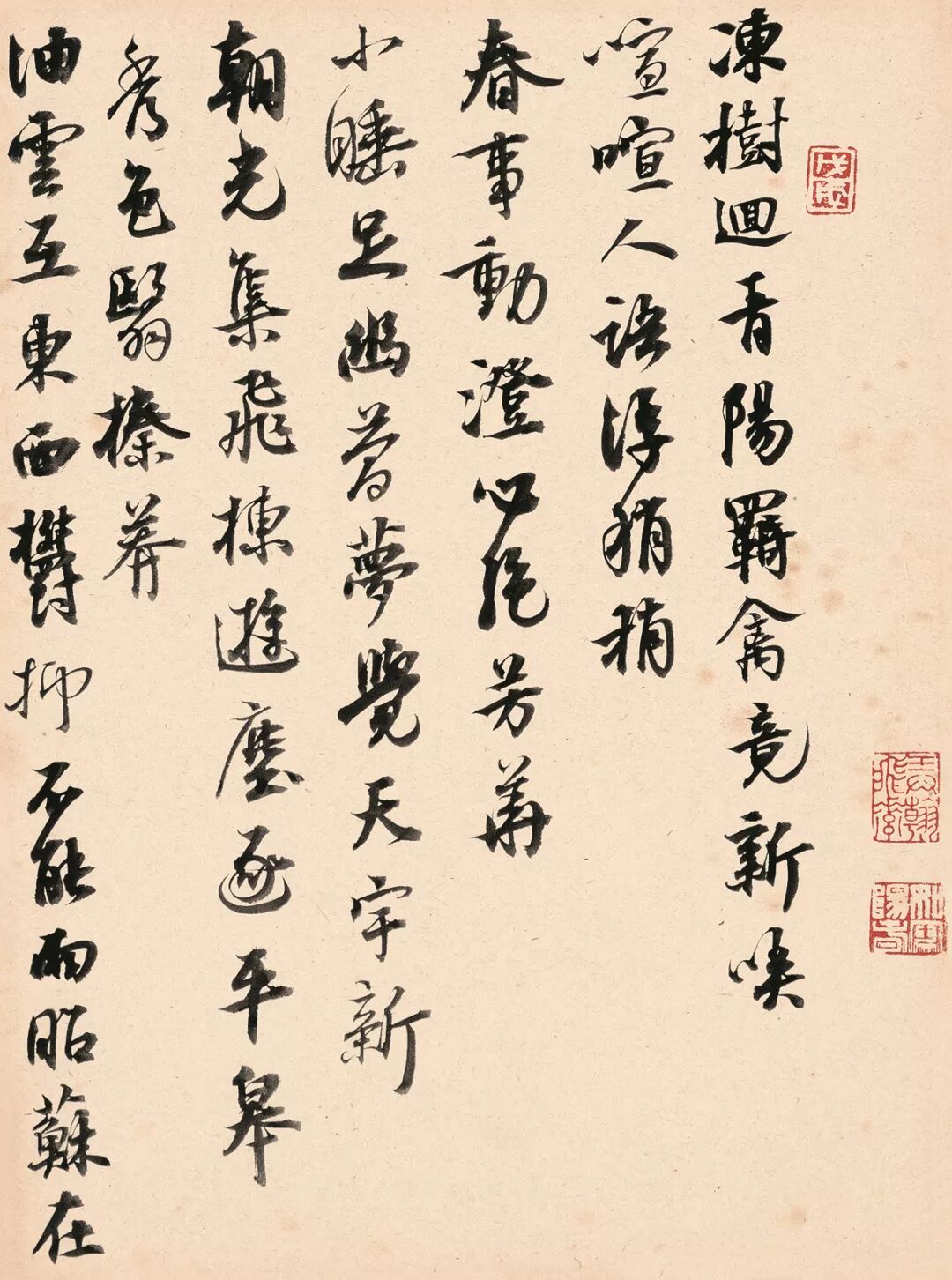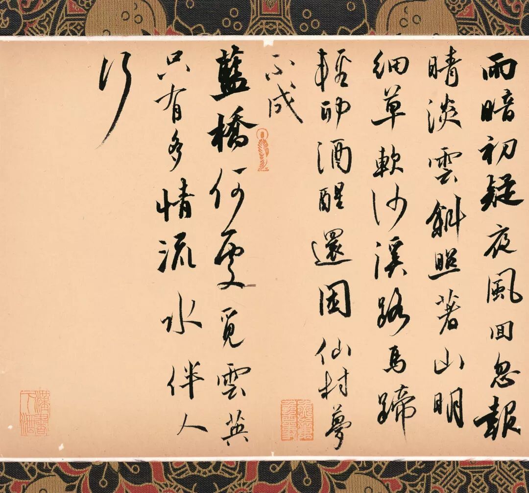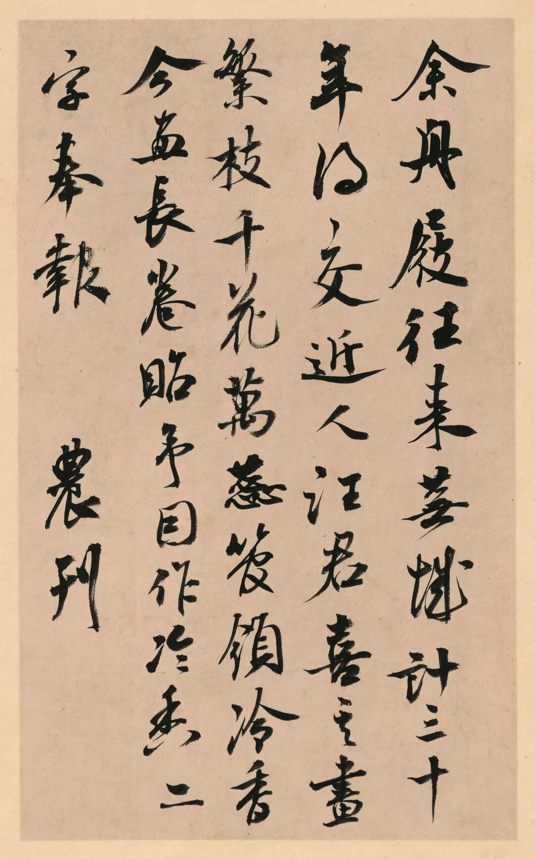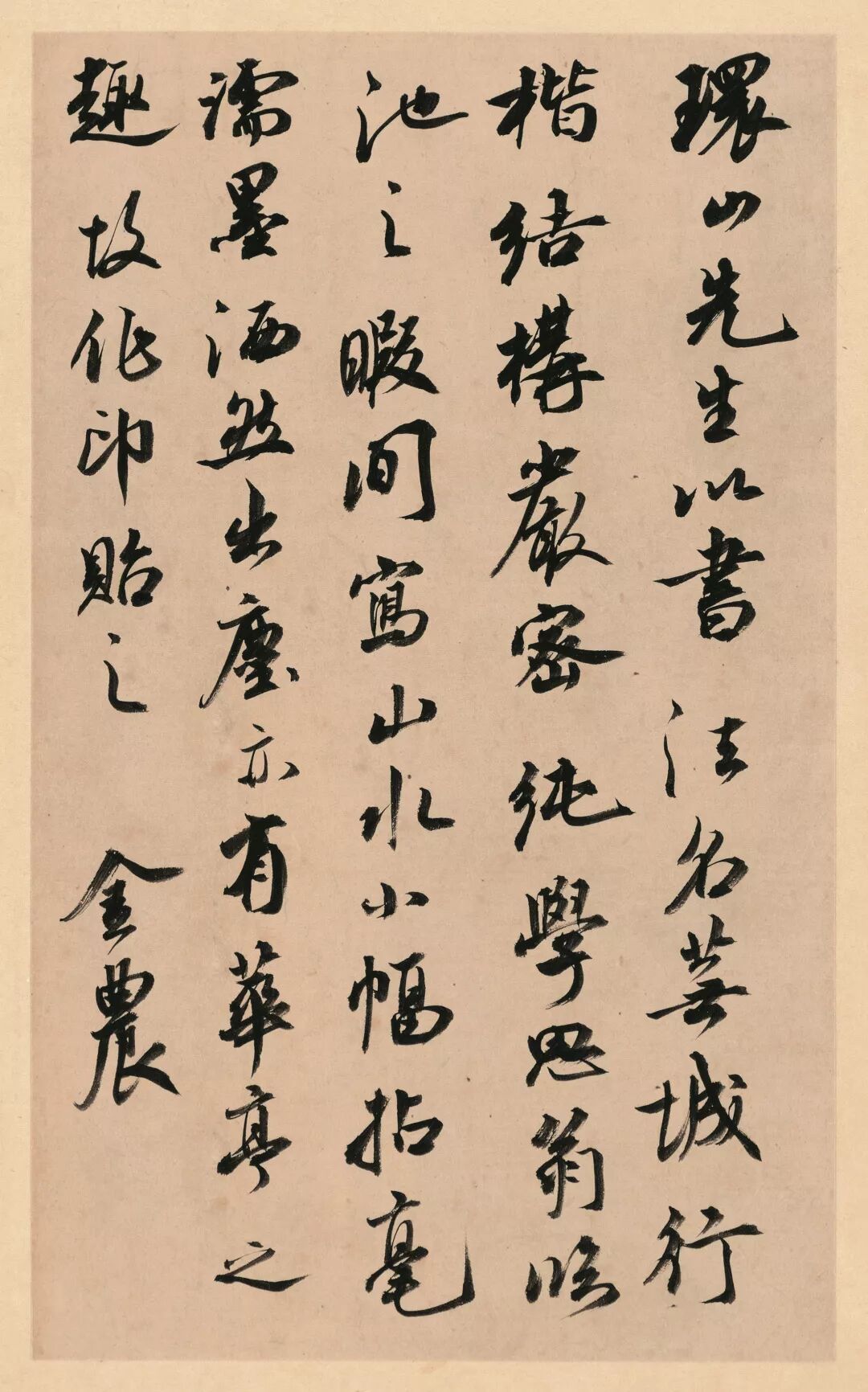 尤其值得一提的是,这本册页的书写自然从容,没有当下过度模仿古帖夸张欹侧以及过分描画——直把写字当画字的习气。这种淡定的表现出于一个二十多岁的青年人之手不能不令我惊讶,白璧微瑕的是“章、麟、瘴、归”的几个长竖和自题跋尾的文字显得不够妥帖,因为借用尺牍形式而故意断开原诗文句的做法也不值得提倡。