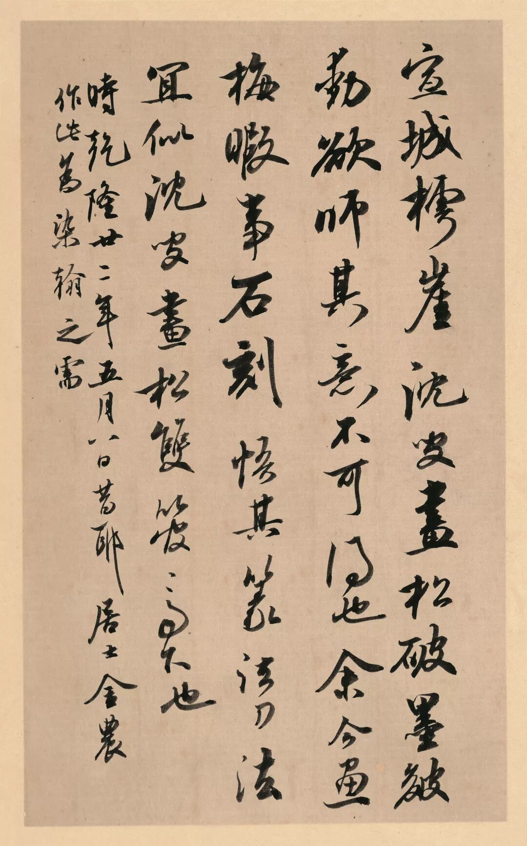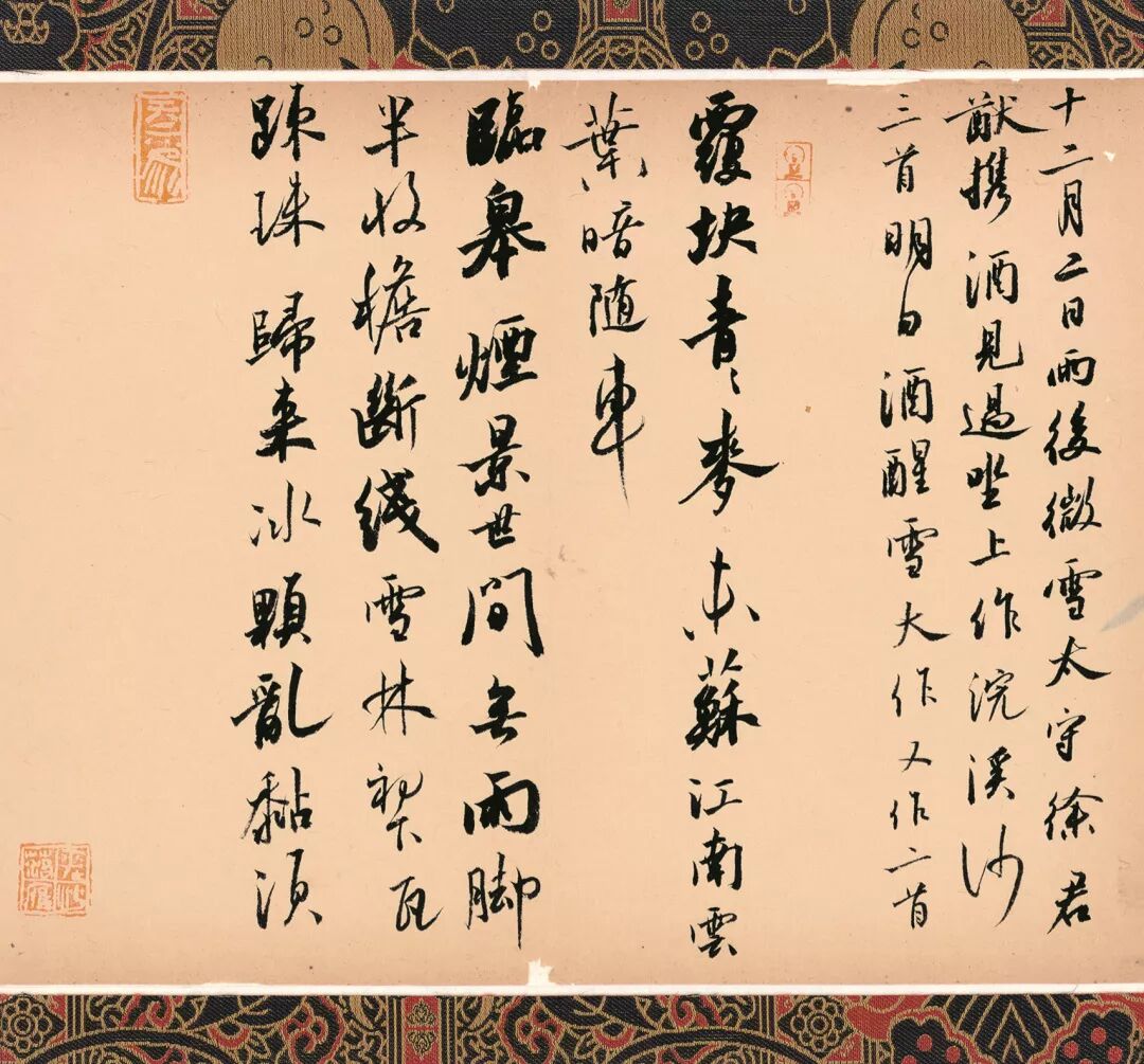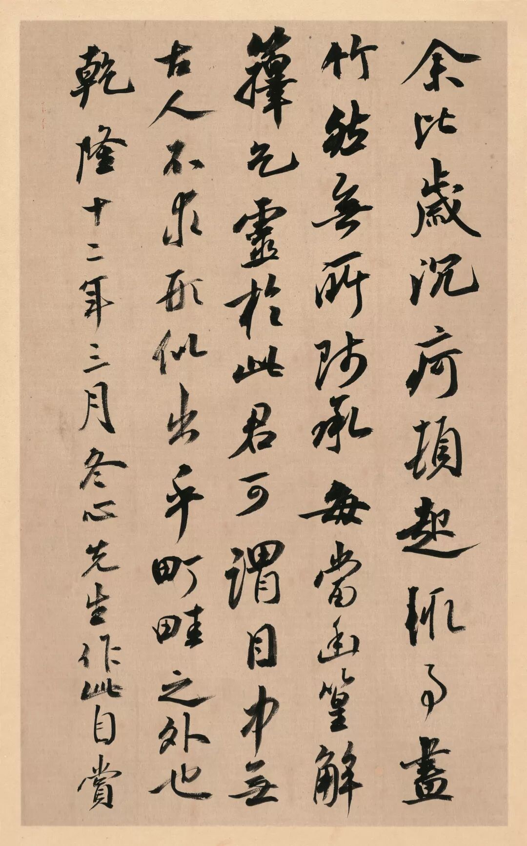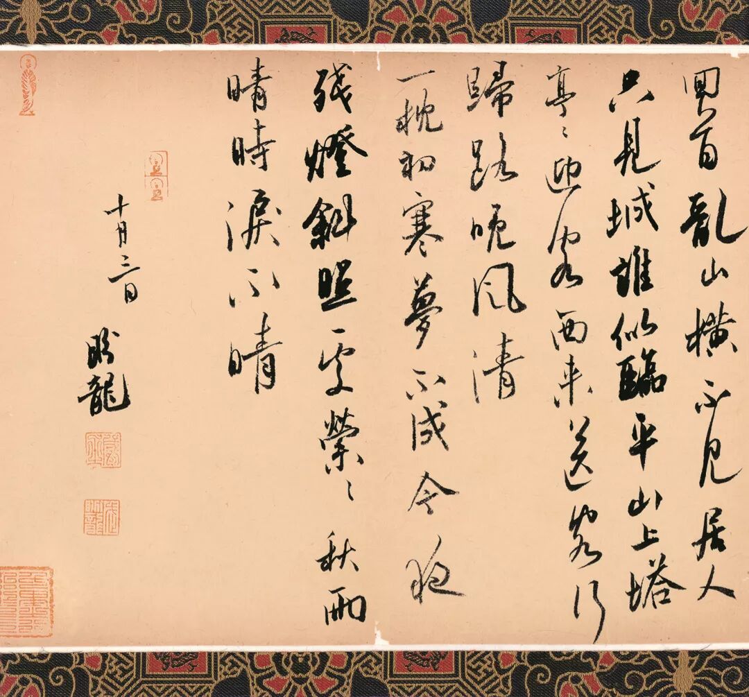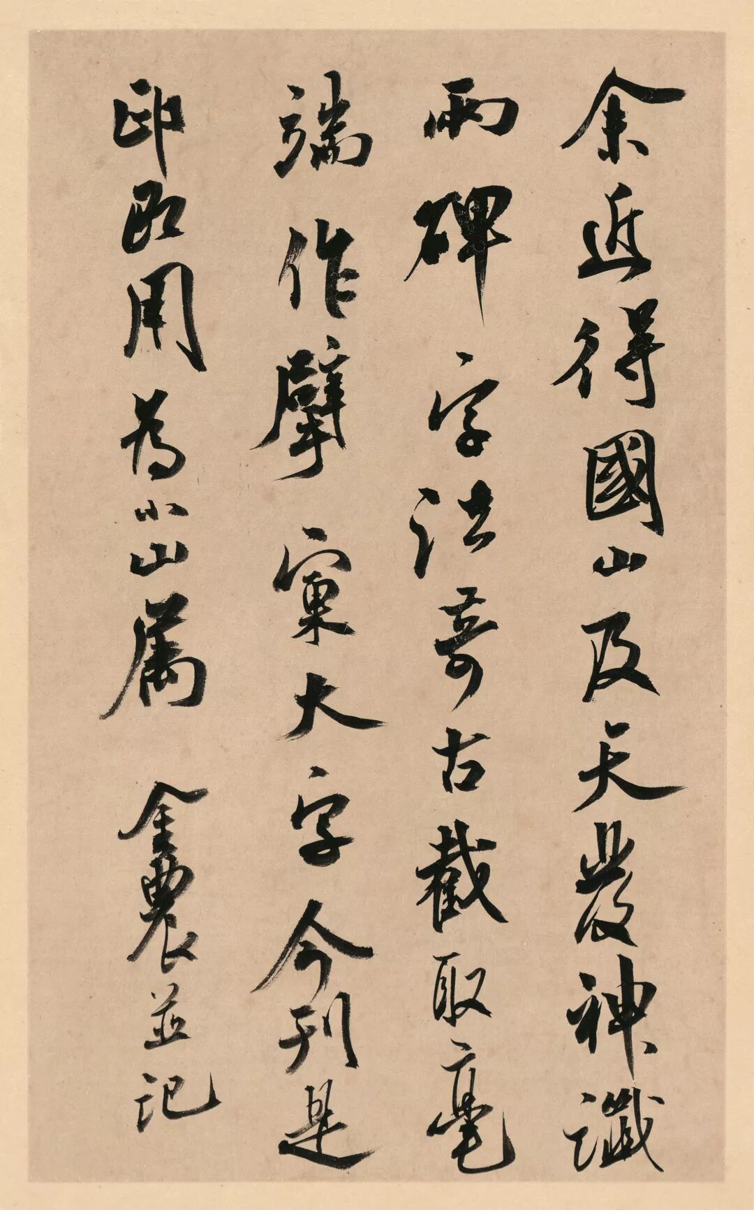 尤其值得一提的是,这本册页的书写自然从容,没有当下过度模仿古帖夸张欹侧以及过分描画——直把写字当画字的习气。这种淡定的表现出于一个二十多岁的青年人之手不能不令我惊讶,白璧微瑕的是“章、麟、瘴、归”的几个长竖和自题跋尾的文字显得不够妥帖,因为借用尺牍形式而故意断开原诗文句的做法也不值得提倡。