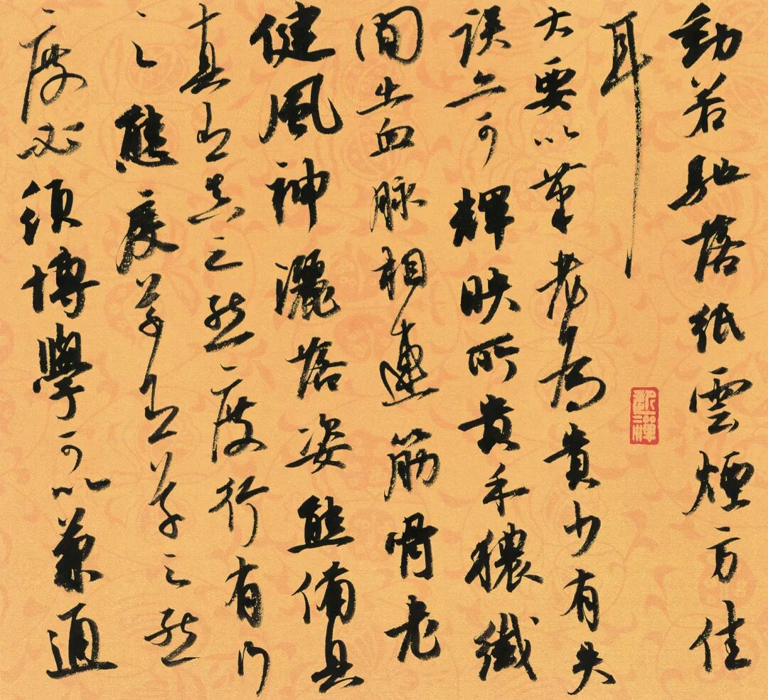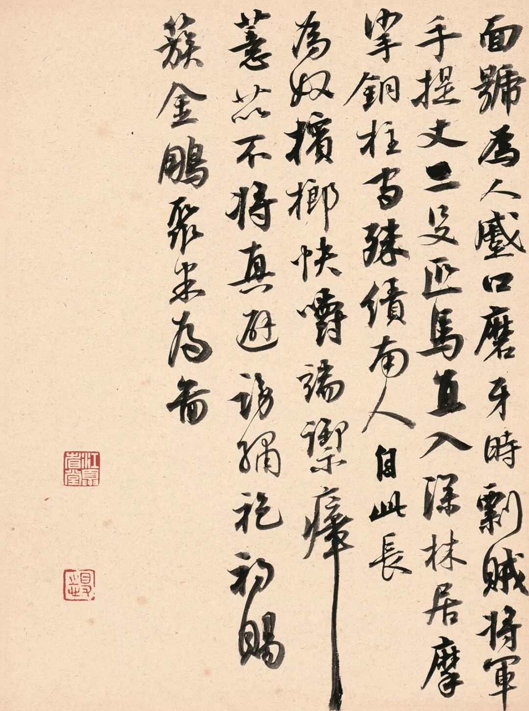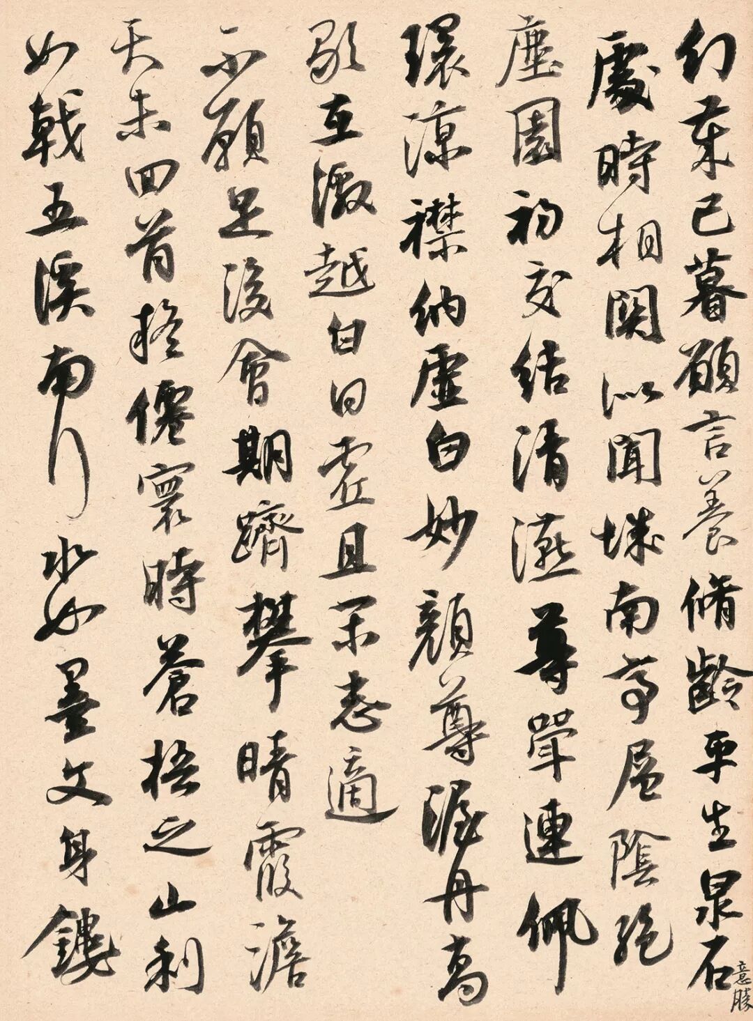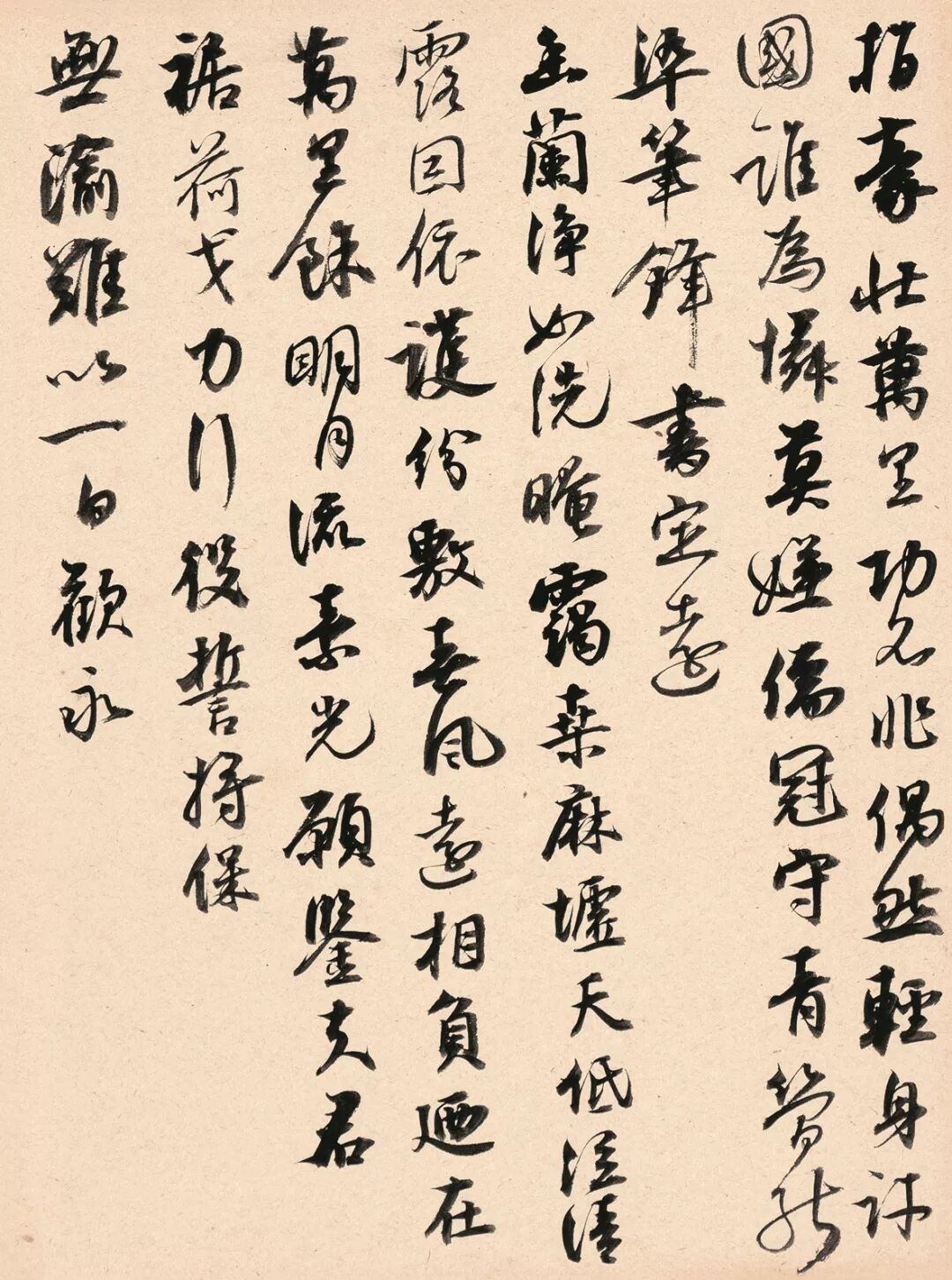 行草灵动,落笔精致,风流潇洒,穷变态于毫端;而随意落笔,又要皆得自然,备其古雅。灵动已含书法形、势之特点,惟清净古雅最为难能可贵,非积习功用之所致也。今人行草,或貌合神离,桎梏于用笔;或得意忘形,放浪于形骸,此皆将灵动与古雅对立,而不识其内在根本之联系。故茫茫之中脱颖而出,必然文质兼备,行笔畅达又意趣不俗者也。