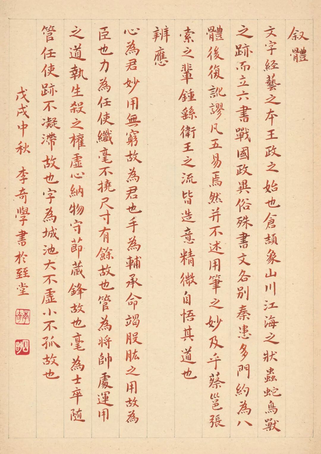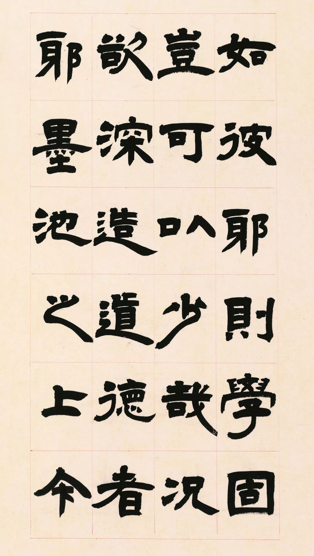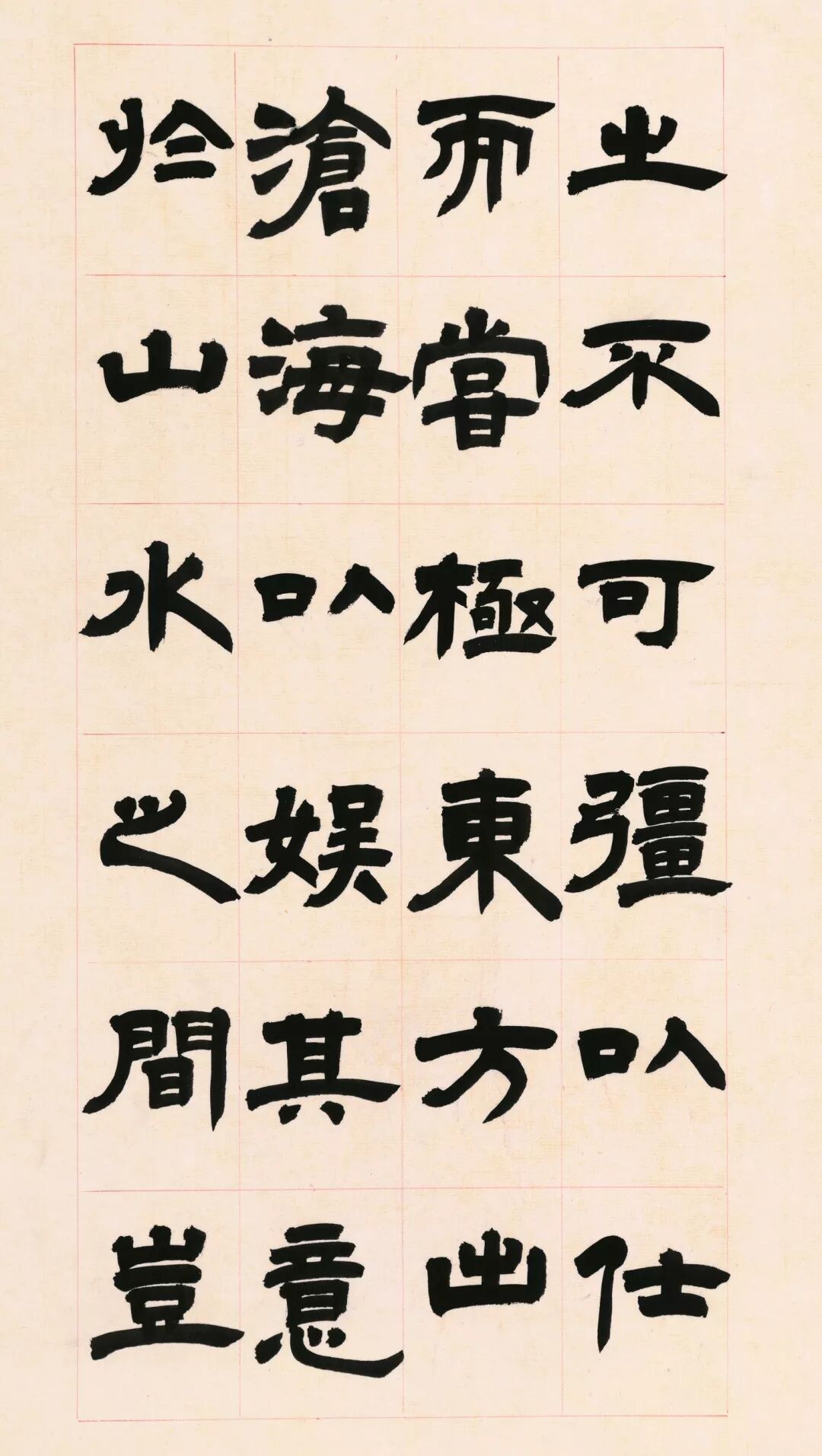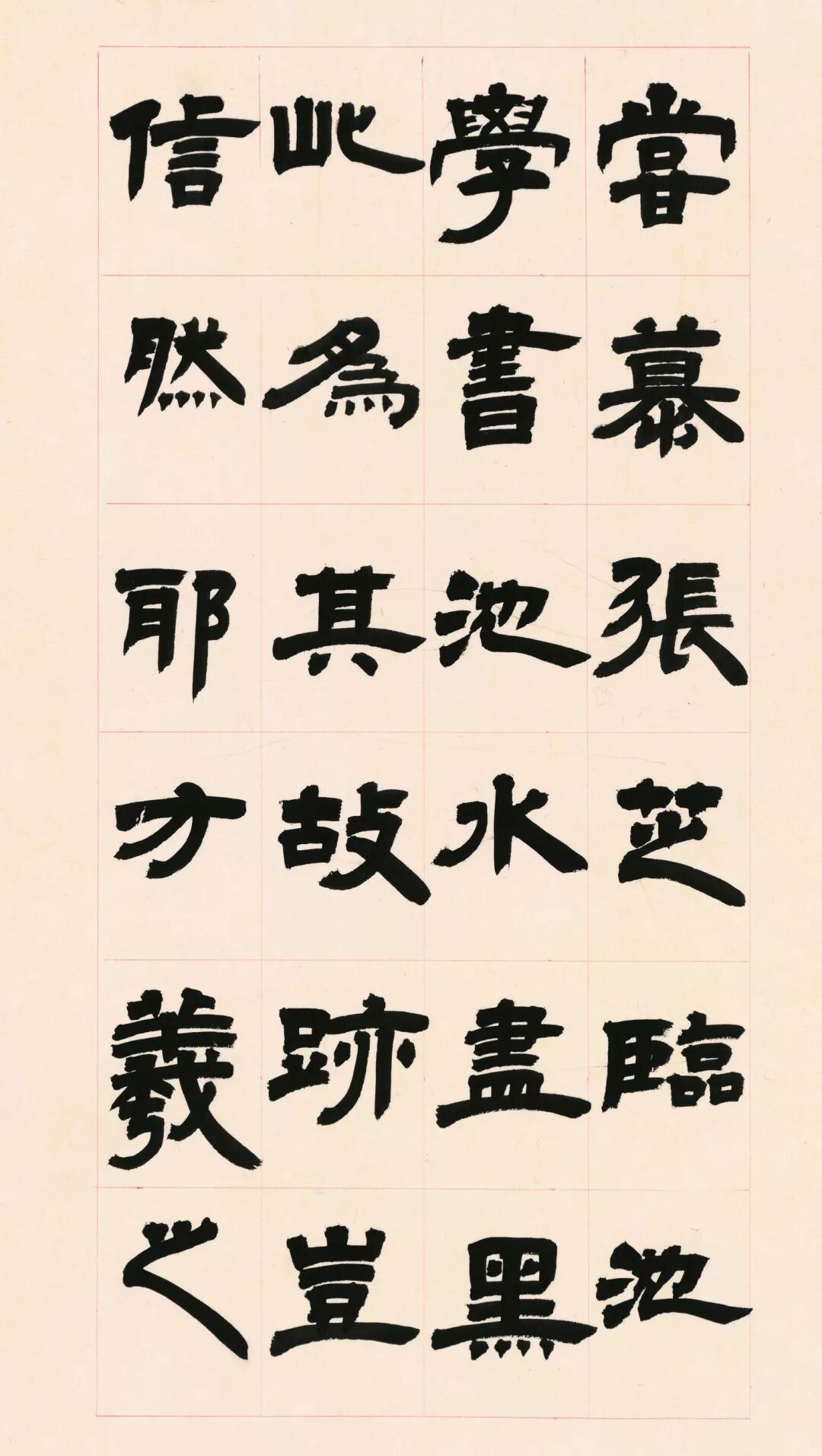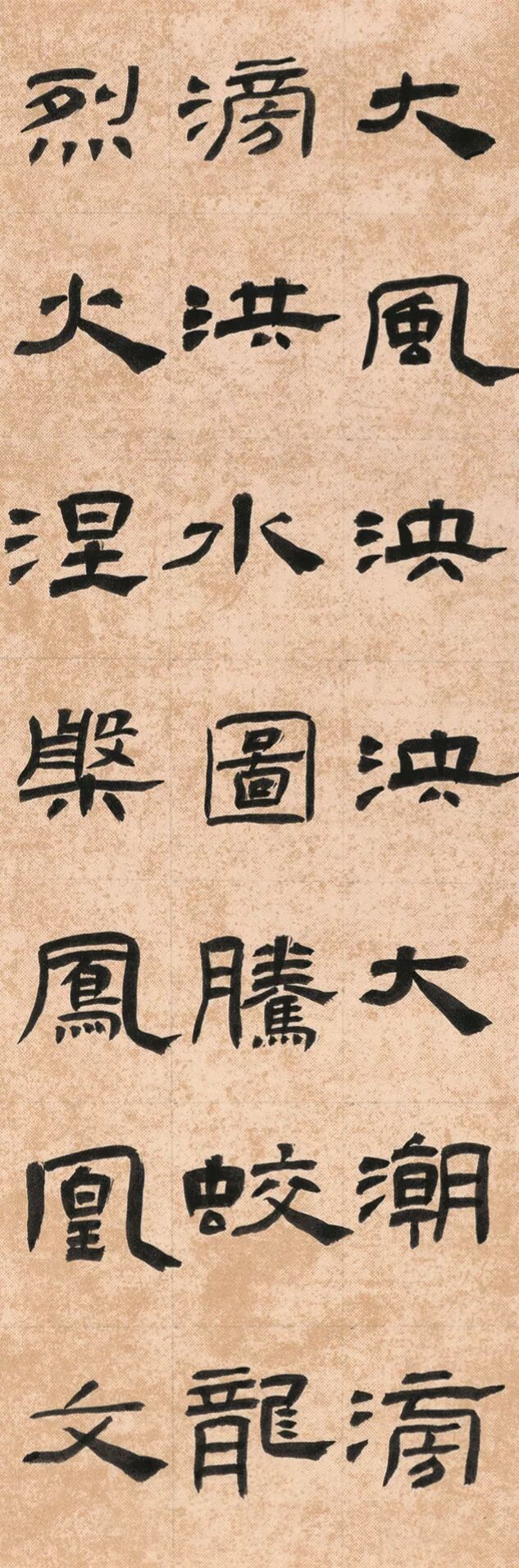 因册页本案头展玩之物,故以篆、隶创作之,必以笔法圆融、结体修美、布局精整、风格雅正为主流表现之手段,以求其雍容混穆、朴茂典雅之气息。又凡篆、隶皆取古汉字之构成,故每字书写必有丰富生命力之表现,取自然之法,百物之状,情趣盎然,正大气象。