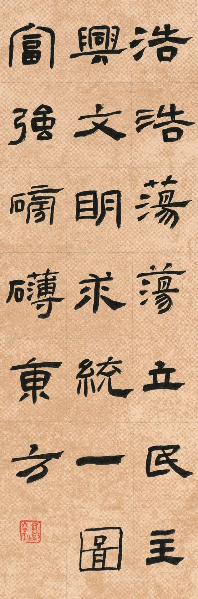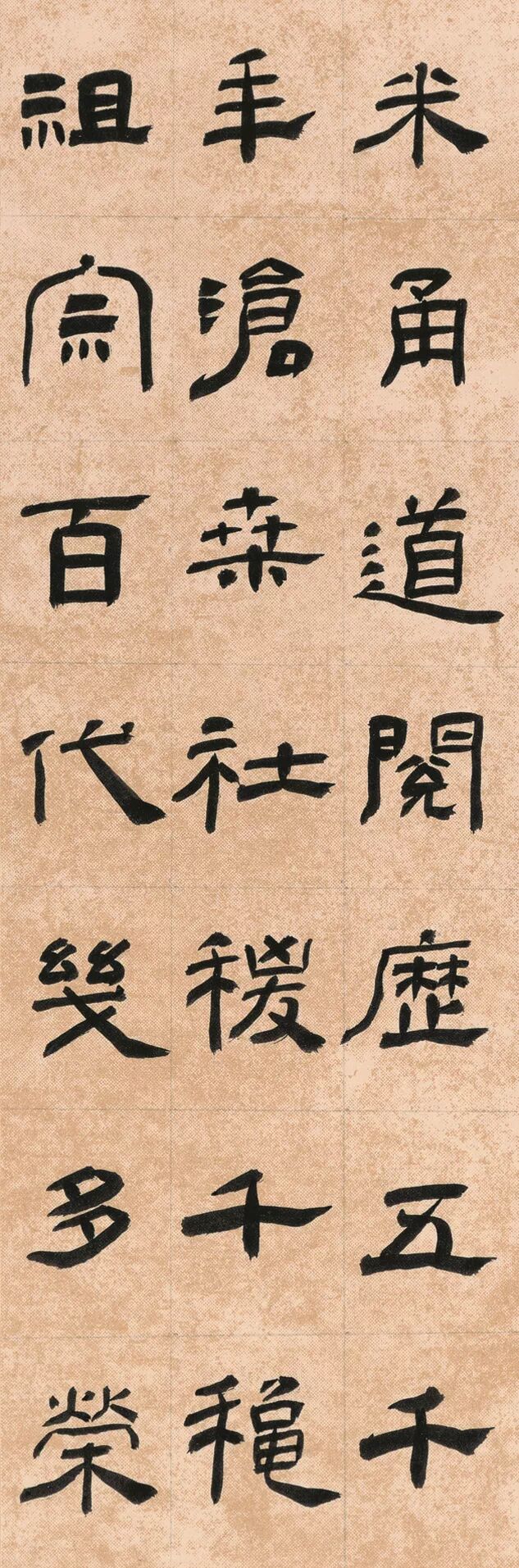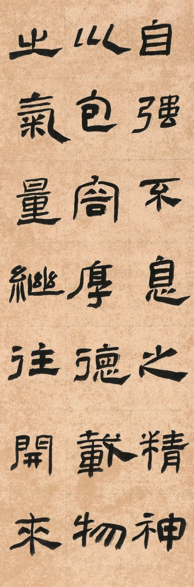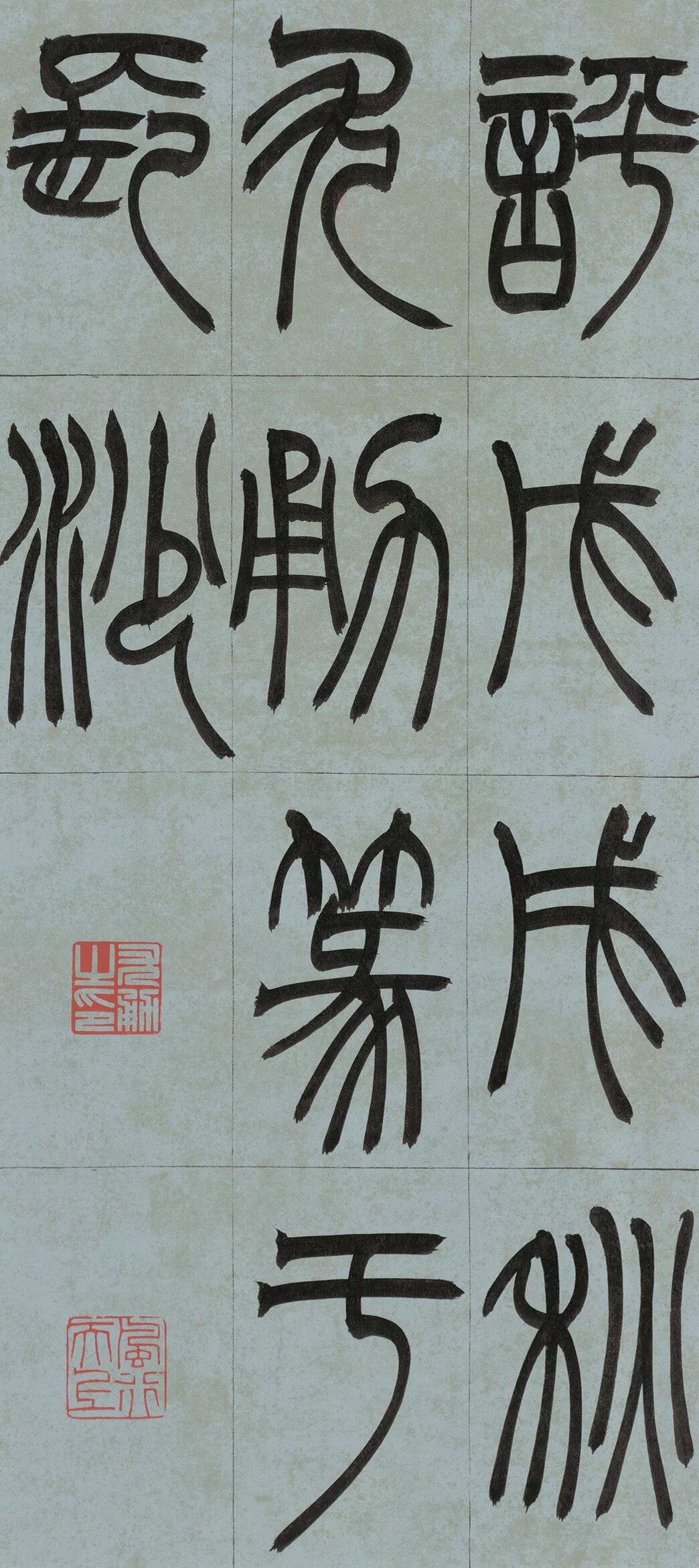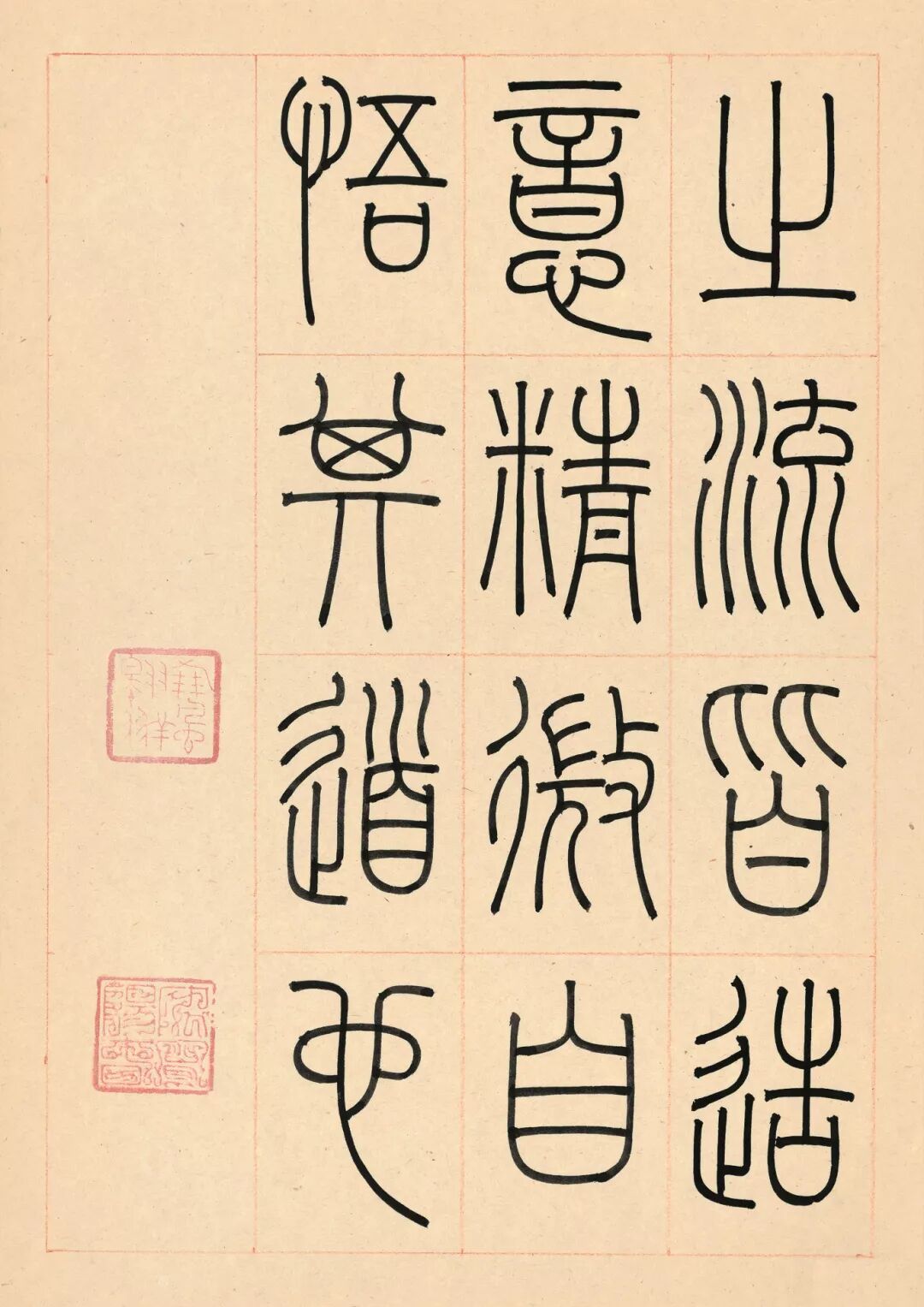 篆、隶两体兼具“金石气”与“书卷气”,雄强而不失儒雅。孙过庭曰:“篆尚婉而通,隶欲精而密”,此度世金针之言,其“婉”,圆曲之势,婉而遒劲;其“通”,运笔流畅,气息贯通;其“精”,笔法精准,功业双绝;其“密”,工致细腻,笔势紧密。