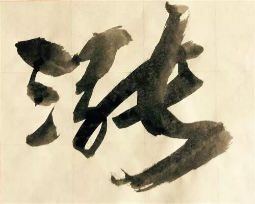 冲墨之法,其实并非书写时使用的方法,它并不是与笔画的完成同时的。而是在点画写完之后,乘笔画尚湿以水点于笔画之上、让墨冲出画外的用墨方法。现代派书法作品中多用之,如日本的少字数,不过与上述的八种用墨方法相比,此法不必多用,只需要时为之就可以了,因为它的使用并不具有与书写同步的不可逆性。