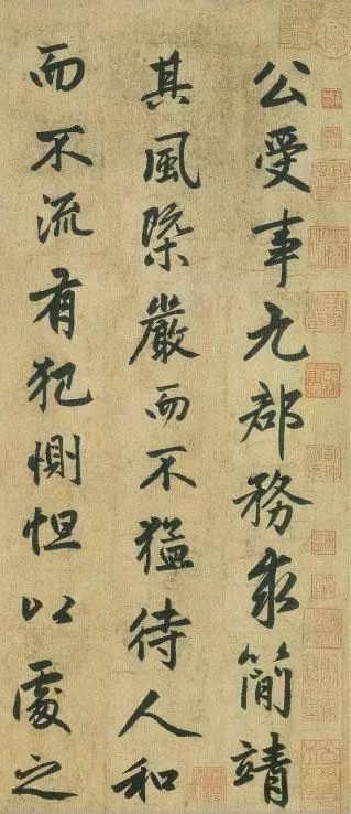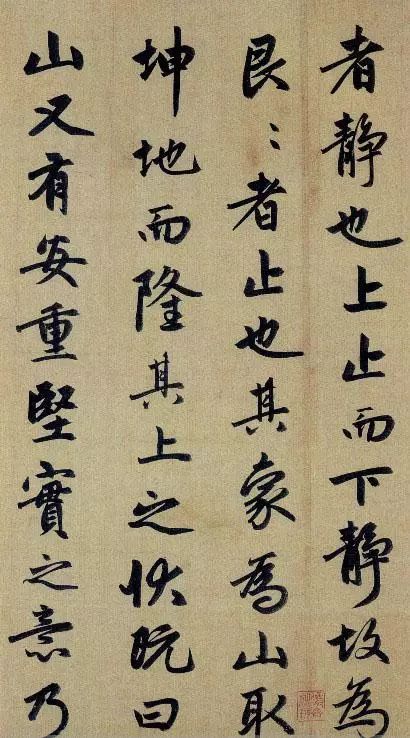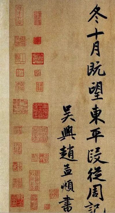 此篇是行书代表作之一,书于至大元年,时年55岁(1308年)。通篇字形俊秀飘逸,而笔笔又谨守法度,体现了他极深的楷书功力,乃至后学无法超越。