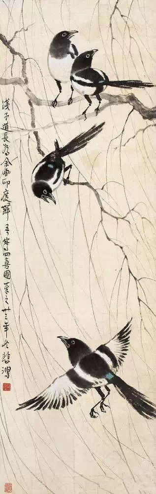 徐悲鸿 《报喜图》设色之本 镜片 33×132cm