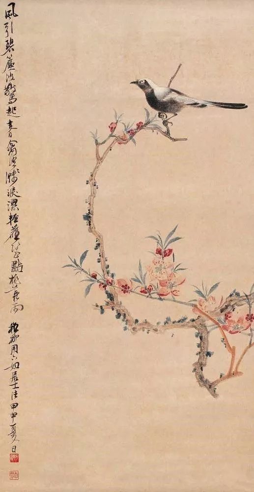 南宋 佚名《桃枝栖雀图》 绢本设色 23.8×24.5厘米