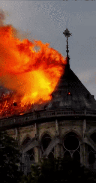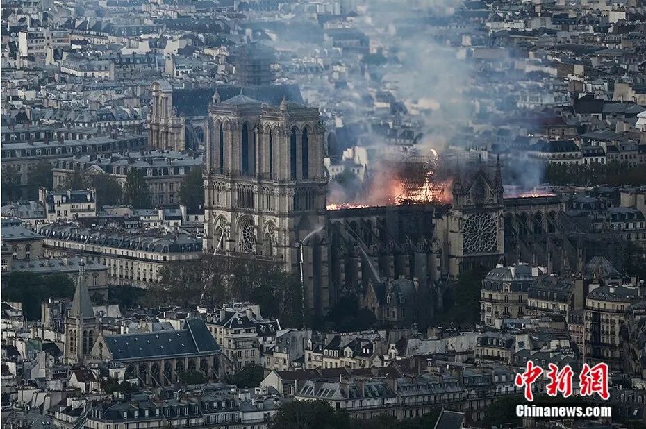 无情的大火已经给这座数百年历史的古迹带来了严重的损毁。虽然大量文物得以抢救,但教堂顶部基本上已被焚毁,标志性的塔尖更是已经倒塌。
