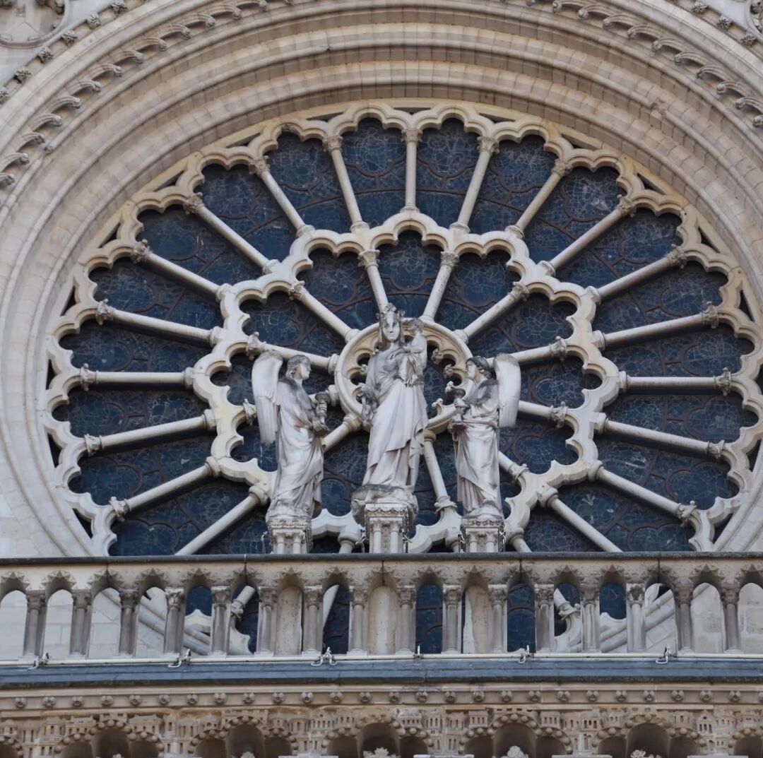 ▲巴黎圣母院著名的玫瑰花窗,在此次大火中也遭受损坏。上一次受损是在1944年,战火中的流弹破坏了中世纪的老式玫瑰色花窗玻璃。后来,这些玻璃被拆除并更换,仅有教堂西、北、南三面的玫瑰窗部分保留了原始设计,而直径21米的北面玫瑰窗几乎完全保存了13世纪的玻璃。1963年,又对教堂的外面进行了清理,清除了800年来的烟尘和污垢。