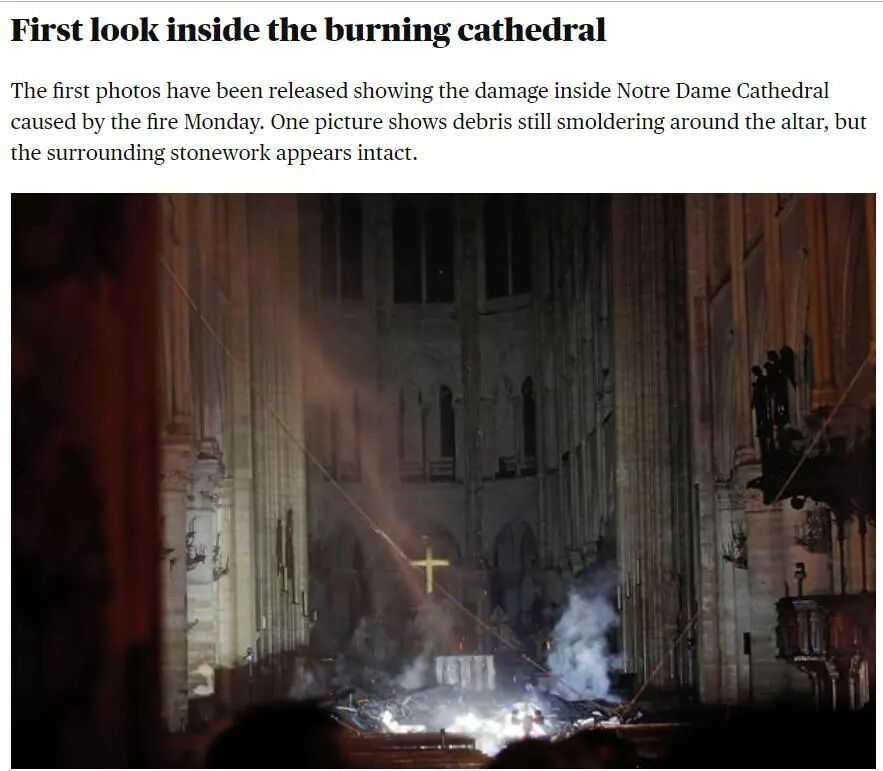 目前,美国CBS新闻网已经发布了一组来自圣母院内部的照片,那场面令人不忍直视……