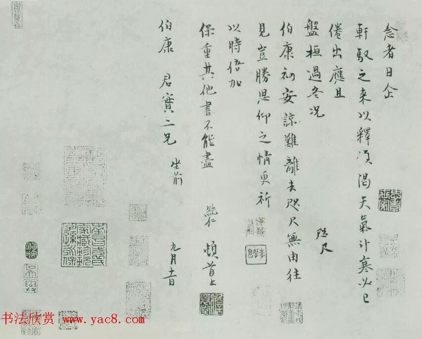 释文:……念者 日企轩驭之来 以释烦渴 天气计寒 必已倦出 应且盘桓过冬 况伯康初安 谅难离去咫尺 无由往见 岂胜思仰之情 更祈以时 倍加保重 其他书不能尽 纯仁顿首 上 伯康君实二兄坐前 九月十一日(念者之前四行,见司马光《通鉴稿》中,已为司马光涂抹)