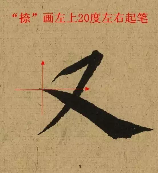 ▼五、“捺” 画起笔角度举例