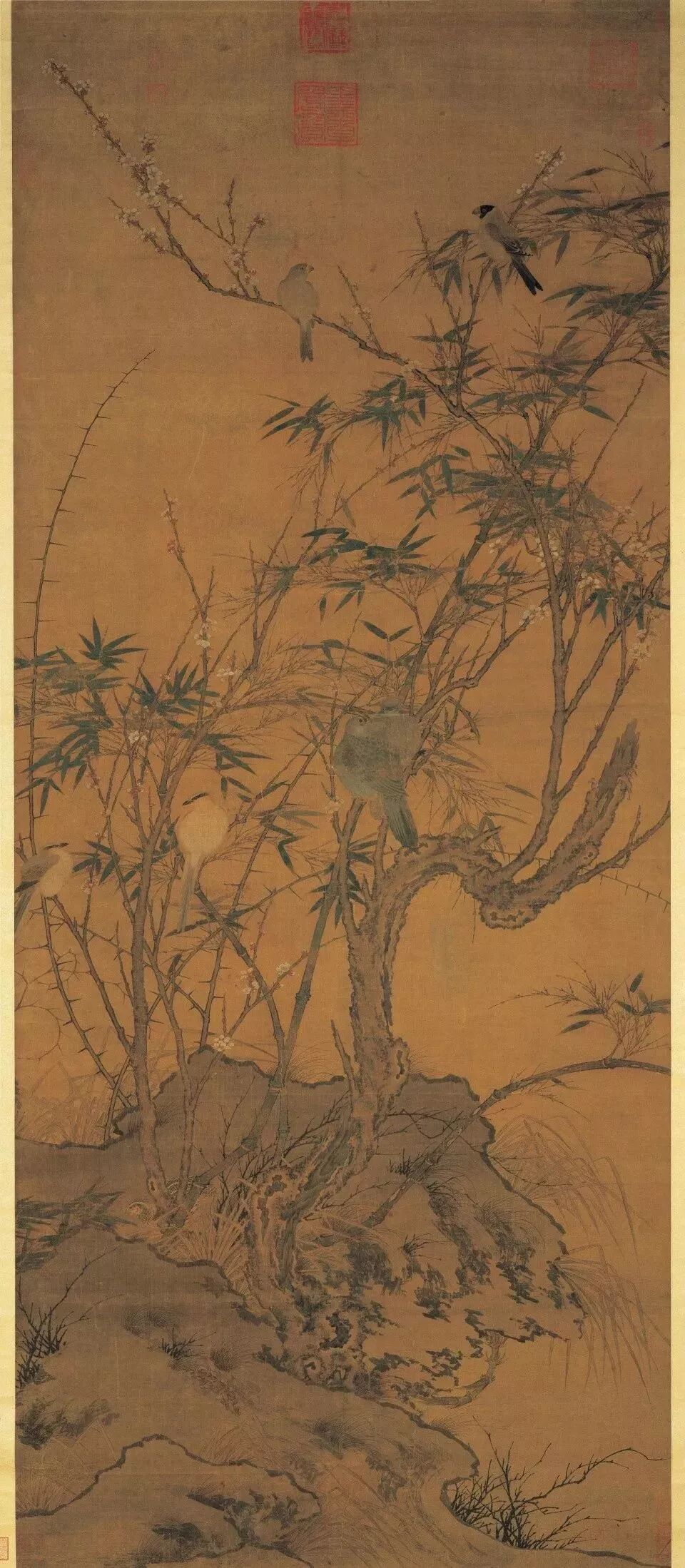 他有一张画叫《绣眼腊梅》,就画一枝非常简单的梅花下面有一个小鸟,那小鸟画得真是特别自我,一点都不张扬。不是那种故意的剑拔弩张,好像表示我很看不起谁。他不用看不起谁,他看不起谁大家太知道了,他也不用表现他有文化,他完全是一种自然美对心灵的感动,很自然地表达出来。所以他的画非常好,我觉得赵佶算一个奇迹。