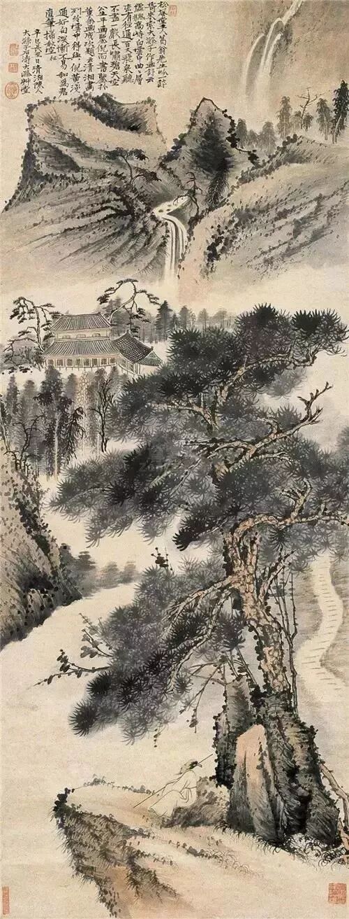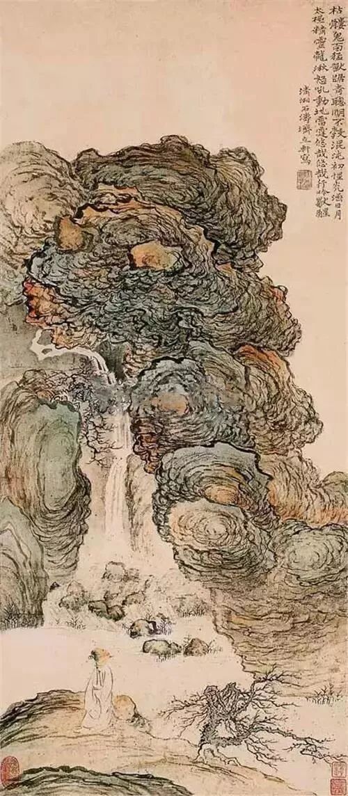 石涛恰恰不是这样一个院体画家,我个人以为,石涛和八大相比,文化上弱一些,但他对自然的直接感受多一些。八大假如是一张山水画的话,石涛的画更像一张风景写生。他对实景写生直接感受自然给他的感动,然后特别不拘一格地表达出来,非常生动。