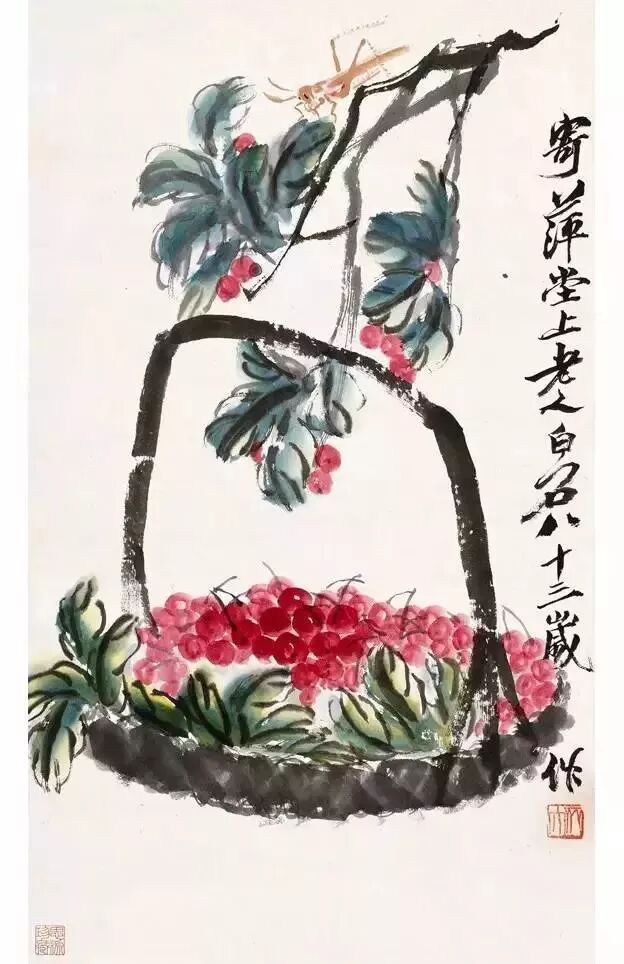 他怎么读文人画呢?在文人画里的一些美,和他在自然生活中看到的美重叠的地方,就是他最感动的地方,而这是最真实的,他在这些地方很敏感。他用的是吴昌硕开拓的所谓大写意的方式,同样的方法在吴昌硕手里俗不可耐,就是讨好读者,讨好观众,卖弄技巧,什么毛病都出现了;到了齐白石手里,腐朽变为神奇。就像一个破烂花棉袄穿在吴昌硕身上,一副穷酸相,穿在齐白石身上,太好看了,没办法。齐白石属于天生资质太好,我觉得齐白石是一个不自觉的大画家。他可能告诉我们一个道理:艺术家是学不成的,是天生的。